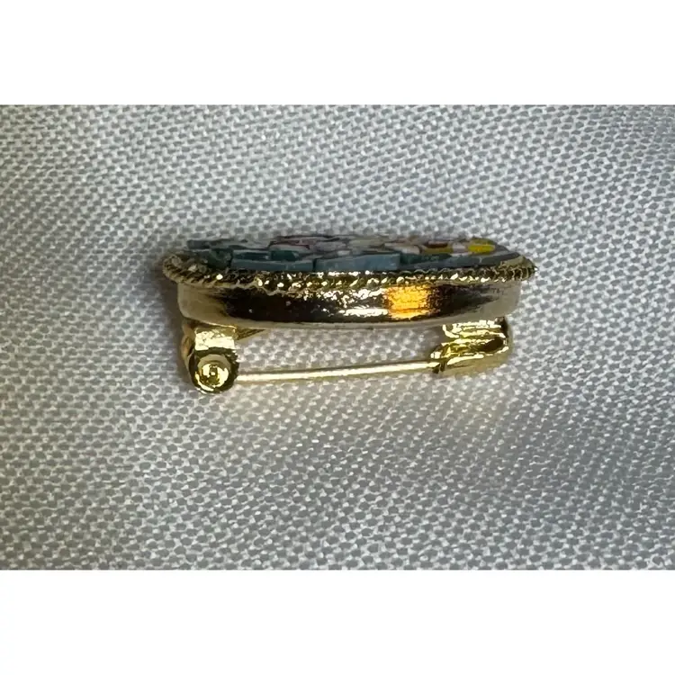 Adorable small millefiori pin. Not missing any chips Small uneven area of trim on one side. See last photo Just under 1” long, just under 3/4” wide