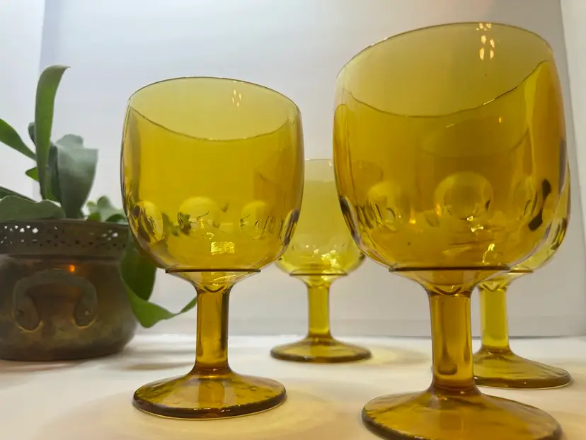 ⚜️ Gorgeous set of 4 mid century Bartlett Collins Schooners amber Goblet glasses!