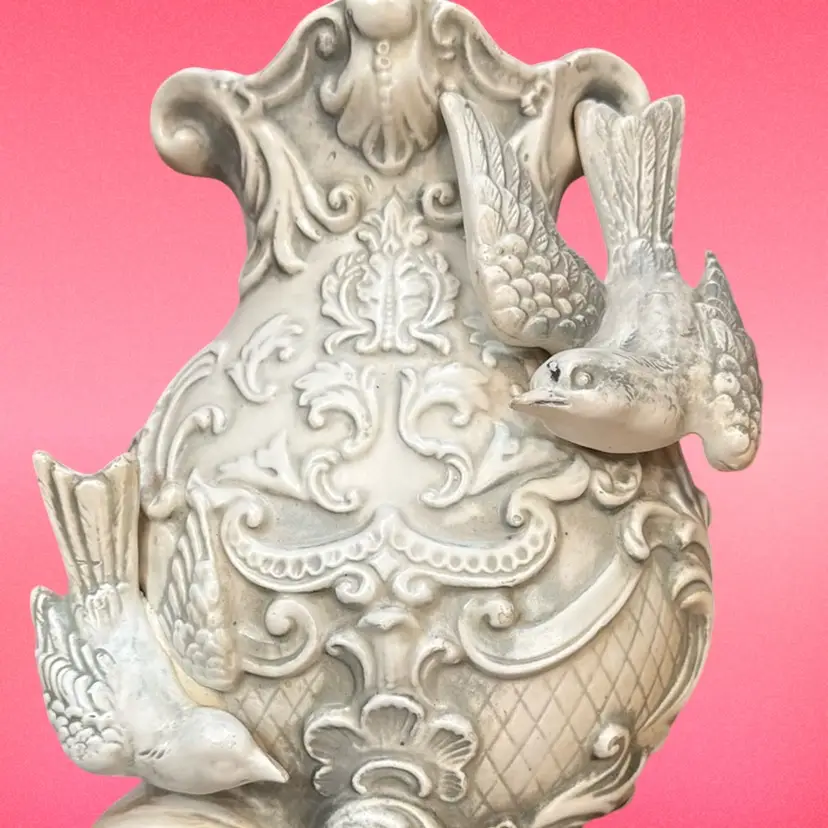 Vintage Ardco bird and vase wall pocket. Absolutely beautiful. No chips. Small internal crack on the back. Does not affect the look. Birds are three dimensional and amazing! 8.25” tall.
