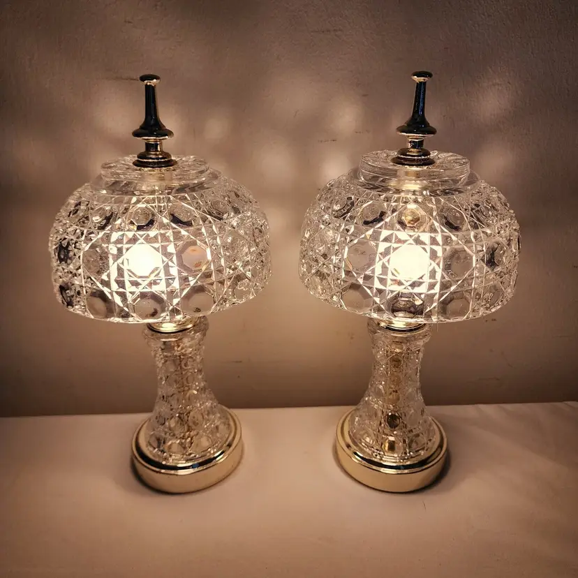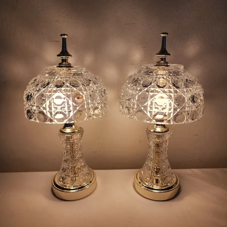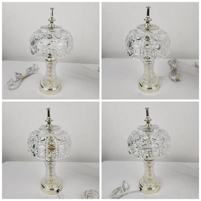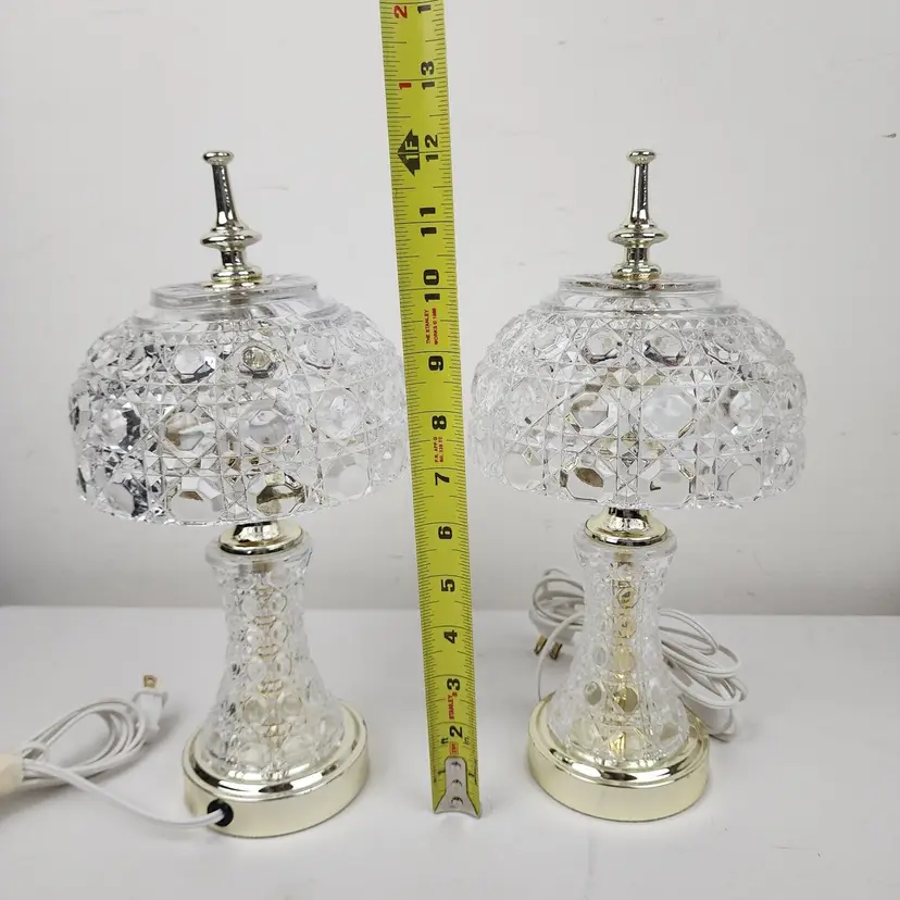 Type: Boudoir Lamp Material: Crystal, Metal Power Source: Corded Electric Style: Hollywood Regency Color: Clear Cord Color: White Design: Crystal, Geometric, Shaded Manufacturer: Tritschler Winterhalder Original/Reproduction: Original Vintage: Yes Control Style: Rotary Knob MPN: 4447 Shade Shape: Bell Size: Small Pattern: Geometric Features: Crystal Decoration, Lamp Shade Included Theme: Art, Fairy Tales, Fantasy, Mystical, Periods & Styles, Romantic Country/Region of Manufacture: Germany Item Height: 12.5" Color 2: Gold Bulb Type: 40 W Brand: Tritschler Winterhalder Manufacturing Location: West Germany