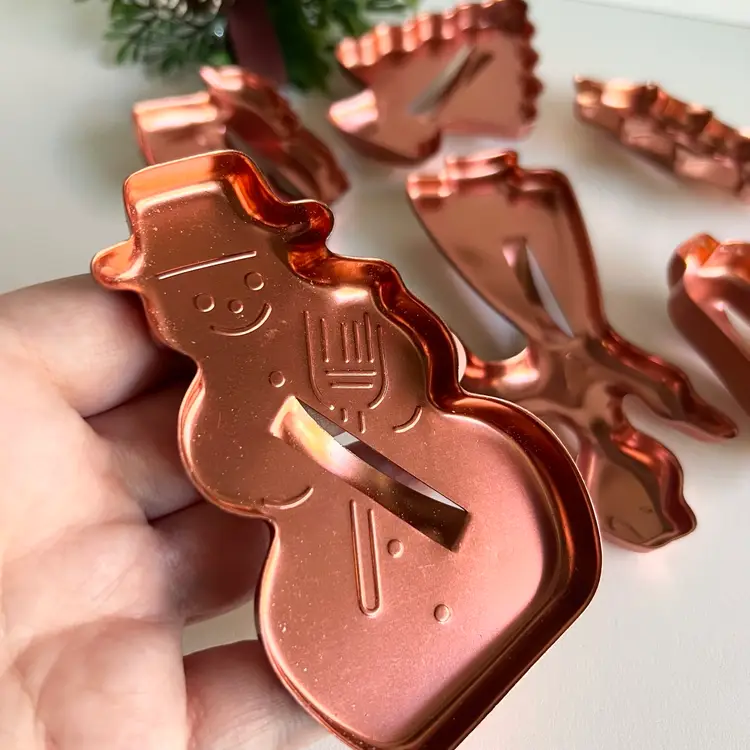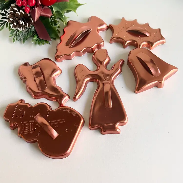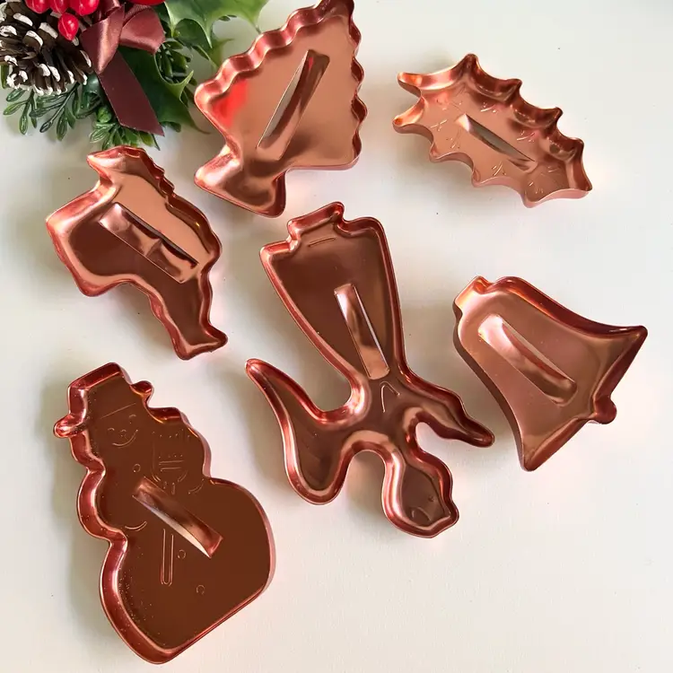 This set of six cookie cutters for Christmas baking or can be used for decorations and displays is oh so mid-century fun! The set of six includes: a snowman, an angel, Santa, a tree, holly, and a bell. Ships from Canada.