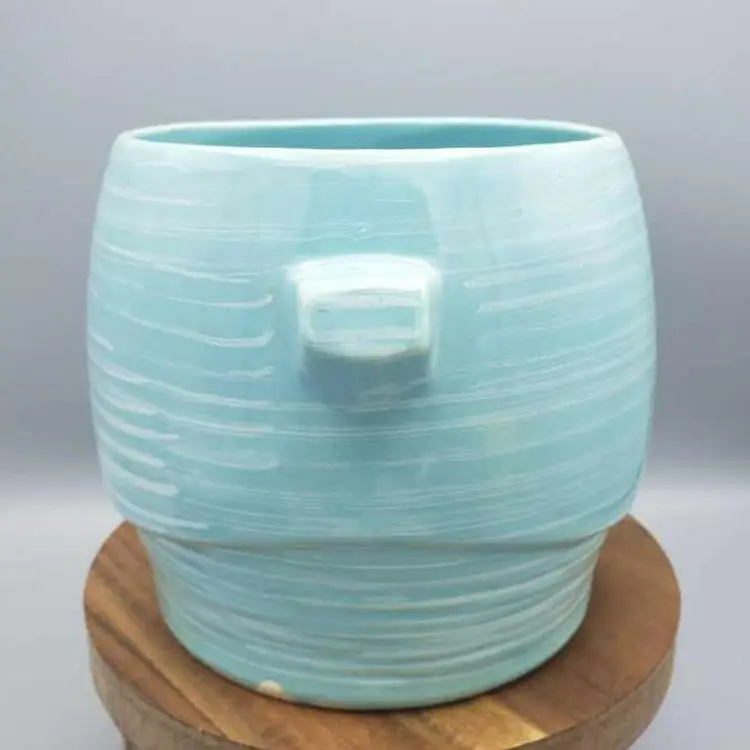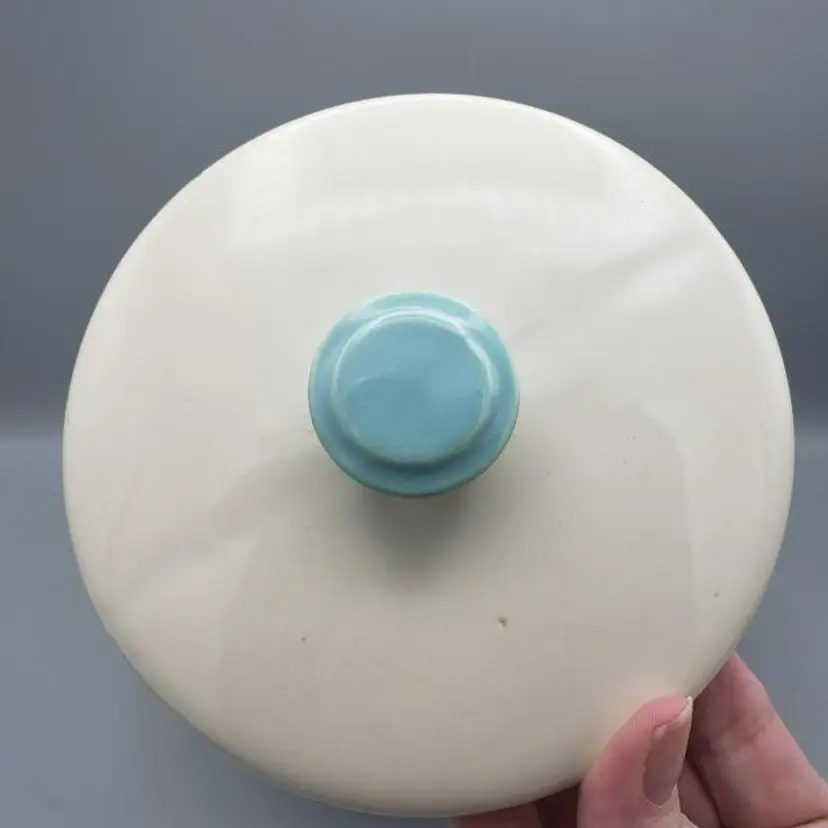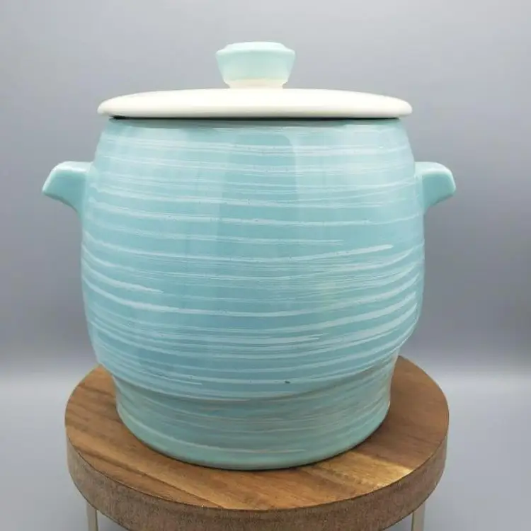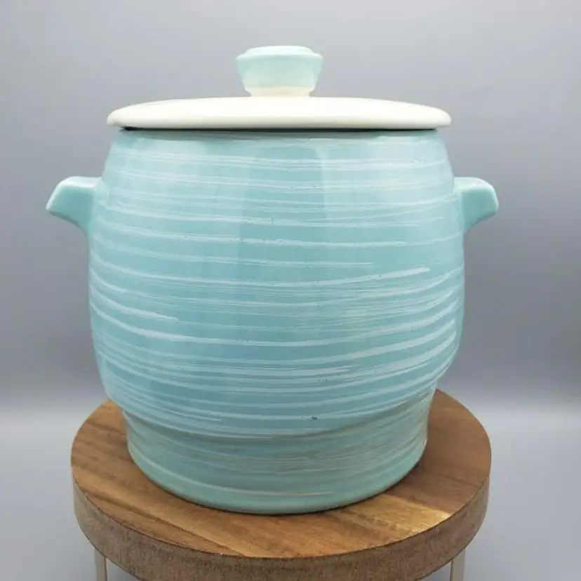 Beautiful Esmond USA (McCoy) aqua with white cookie jar/canister in excellent condition! This is a beautiful example of California pottery.
