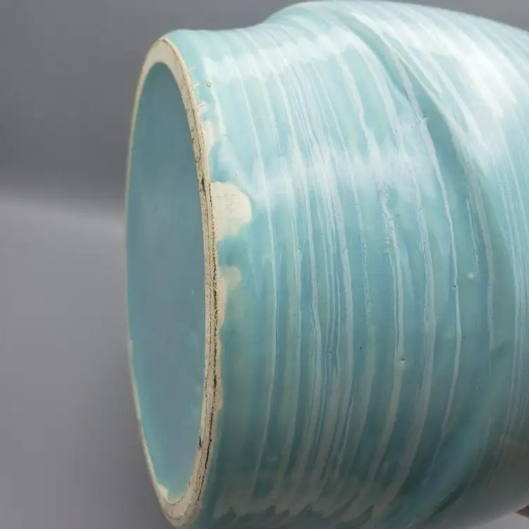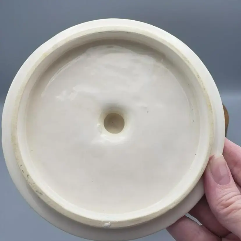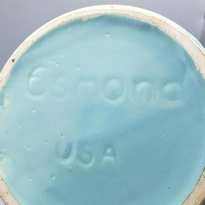 Measurement: 7” H x 5-3/8” diameter base Condition: No chips, cracks or fleabites; The spots around the bottom are where the glaze was dripped and didn’t quite cover at the time it was made. It is not damage. Marked: Esmond USA