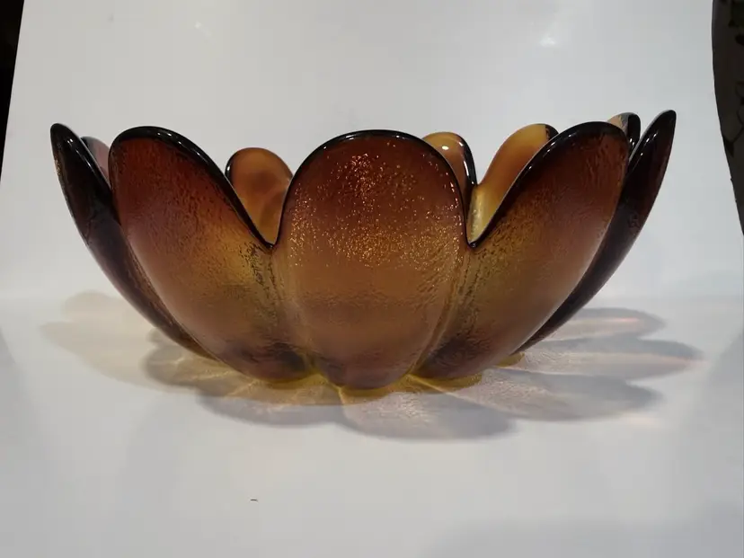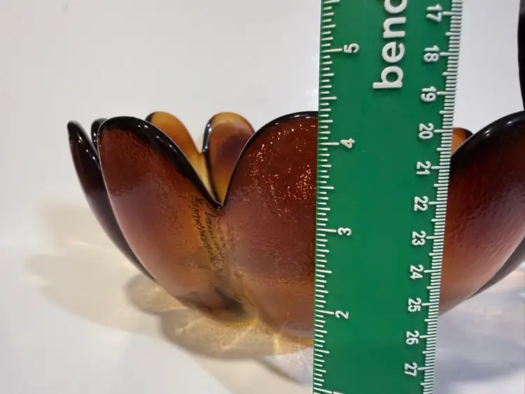 Amber/Ombre. Perfect condition/no chips or cracks. Measures 11 inches across and about 4.5 inches high. Heavy!!