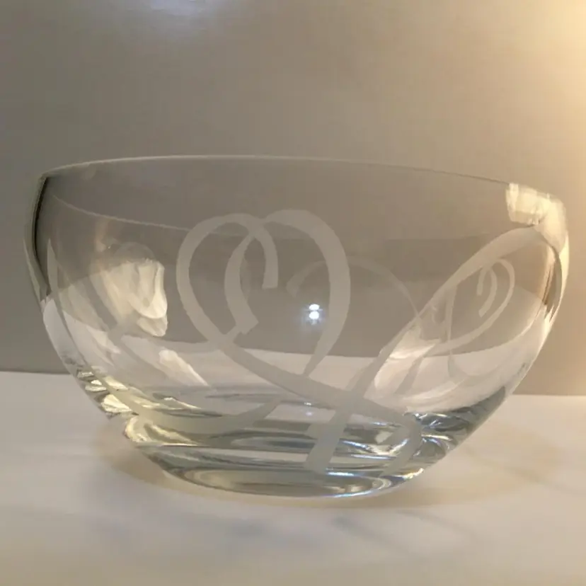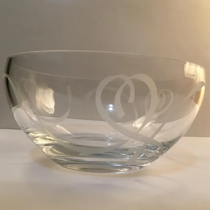 This lovely high quality crystal Lenox bowl has the "True Love" Heart and Ribbon motif etched all the way around. Definitely vintage Mid Century, produced from 1960 to 1969. 8"x 3 3/4". There are no chips or cracks. Excellent condition. This is my first NikNax listing, so I'm making it a great deal.