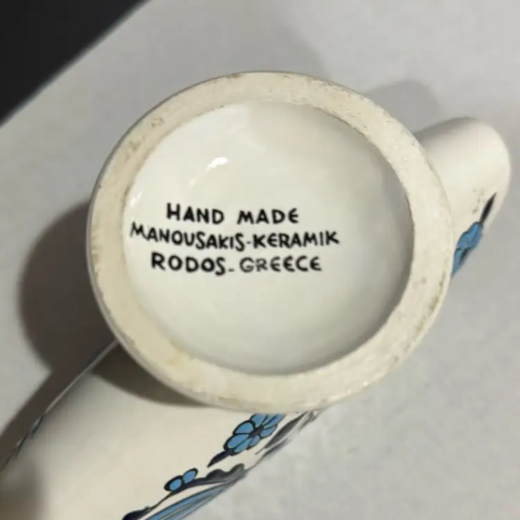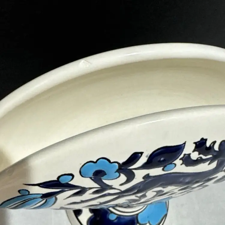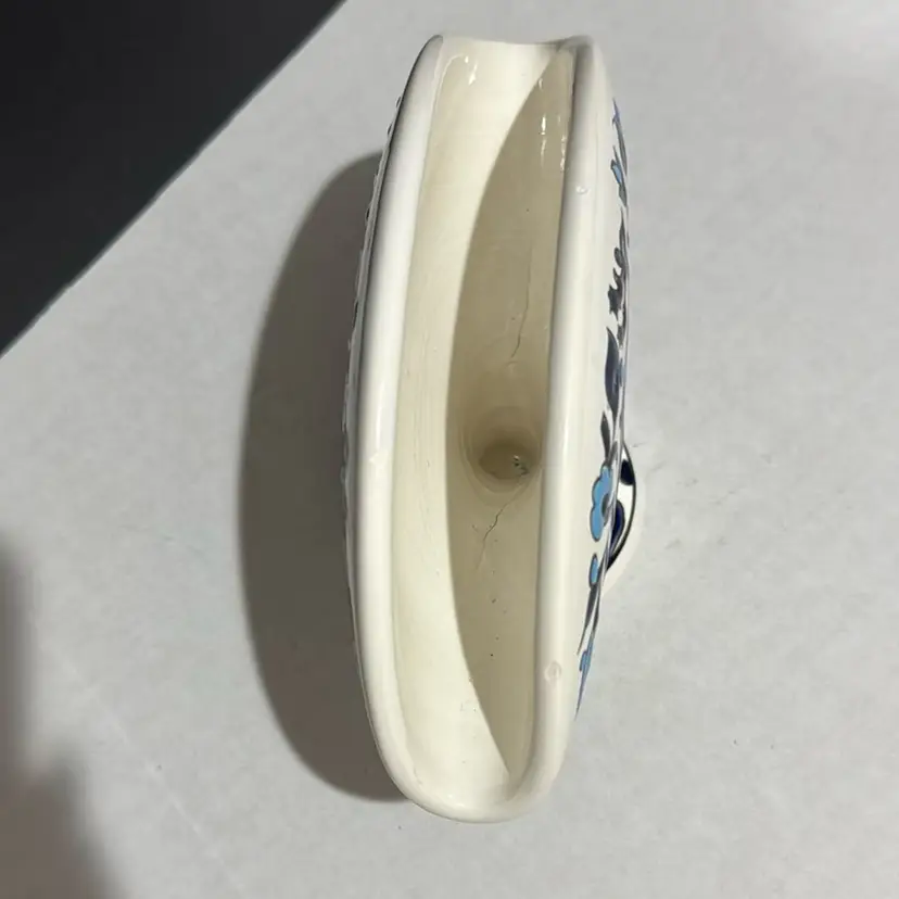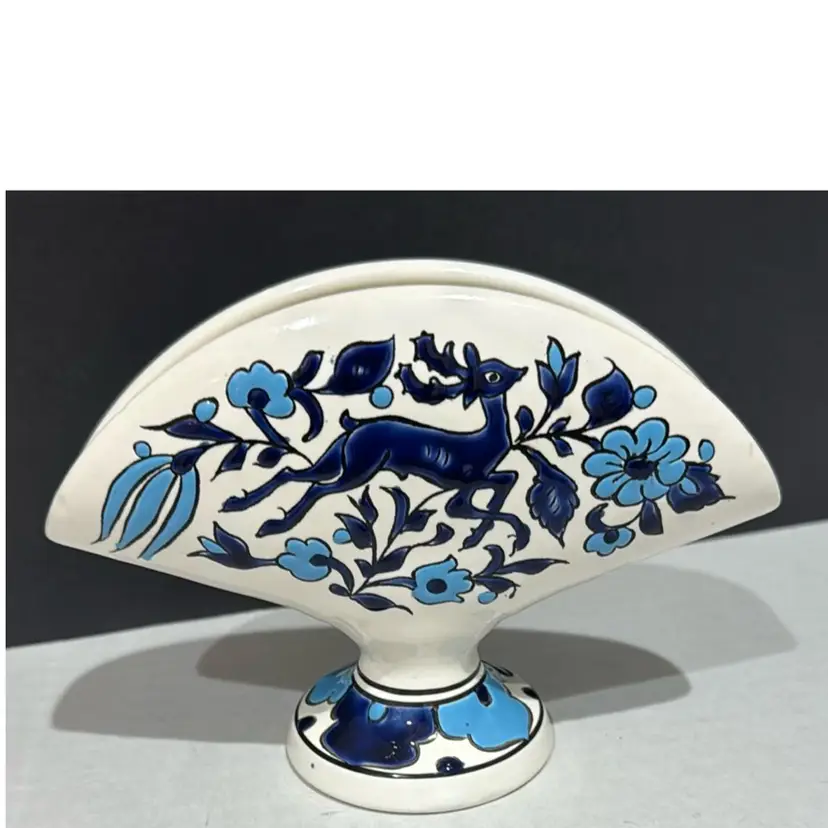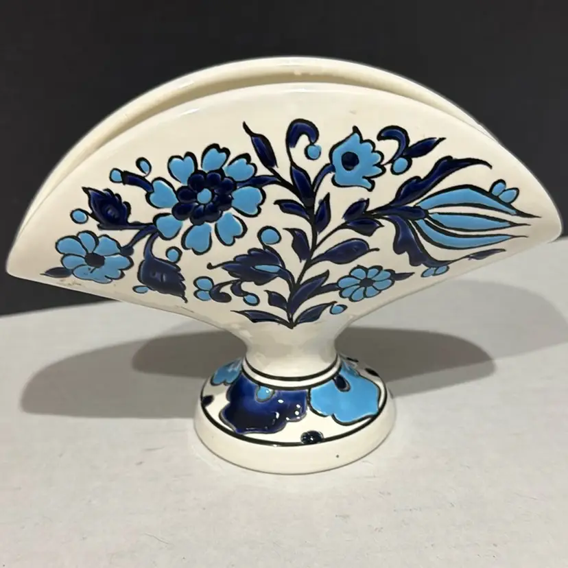 Awesome mid-century handmade in Greece napkin holder. Vibrant shades of blue. Measures 4 inches tall and about 6 inches wide. Can be used as a napkin holder or just as decor.