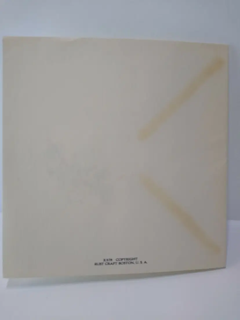Circa 1940's-1950's mid century modern vintage original used greeting card. Back is marked Summerfield USA. Size is 5" x 4.75". Has edge creases, spotting on back, and age wear. Stock#gc24.