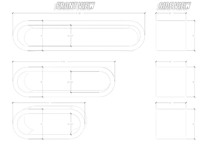 Width: 22", 17", or 12" Height: 5" (outside measurement) Depth: 5" Middle Opening: 3.5" tall Feel free to message me for custom sizes! ⏳ Turnaround Time: Your item will ship within 3-4 weeks after placing your order, depending on current orders.