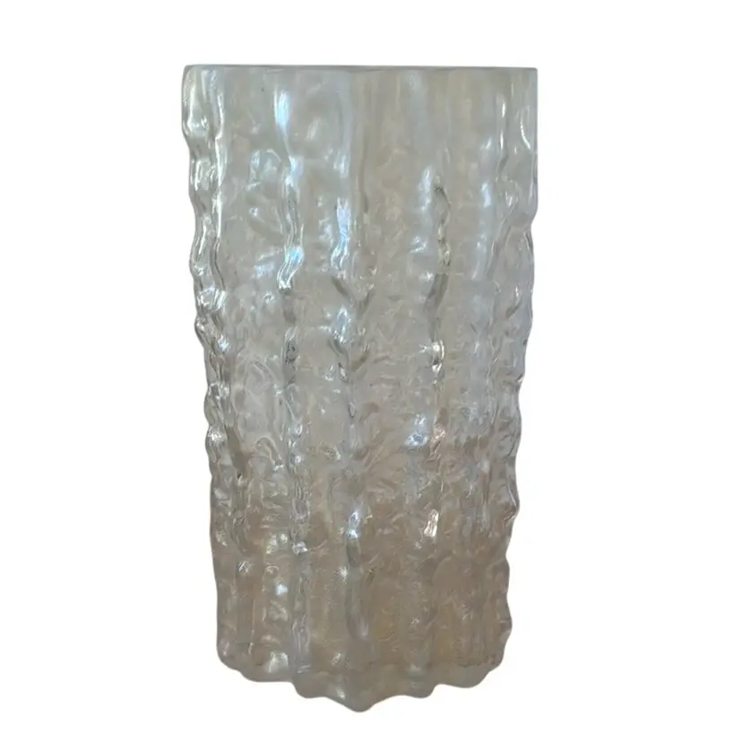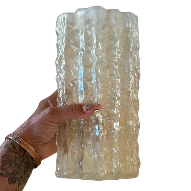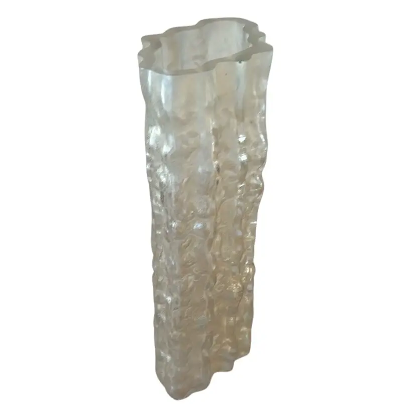 This unusual and stunning Mid Century Modern Murano vase was realized by the esteemed designer Carlo Scarpa for Venini in Italy circa 1960. It features a highly textural volumetric ellipsoid form with a channeled organic exterior surface imbued with 24kt yellow gold flecks lending it a semi opaque quality. Occupying an interesting interstice between transparency and opacity, the glass resembles frozen water. Beautifully (and obviously) crafted by hand by one of the great designers of the period, this piece is sure to delight discerning collectors of first rate Murano glass objects and fine Mid Century design, in general. Its monochromatic palate and austere silhouette make this piece as versatile as it is aesthetically appealing, blending perfectly with any style of interior from classic Mid Century Modern to contemporary. It is in excellent vintage condition.