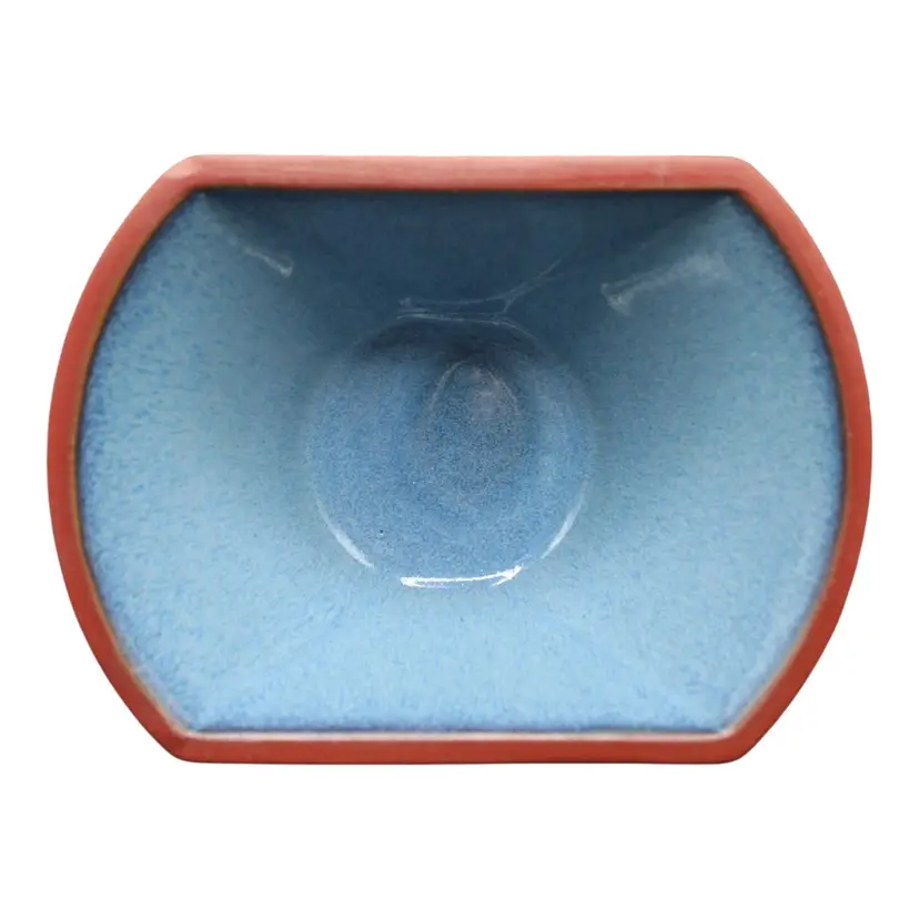 Mid-Century Modern Studio Pottery Bowl Geometric Red & Blue Sculptural Ceramic Signed HH Art Pottery 5 1/2”x4”x2 1/4”. No chips or cracks.