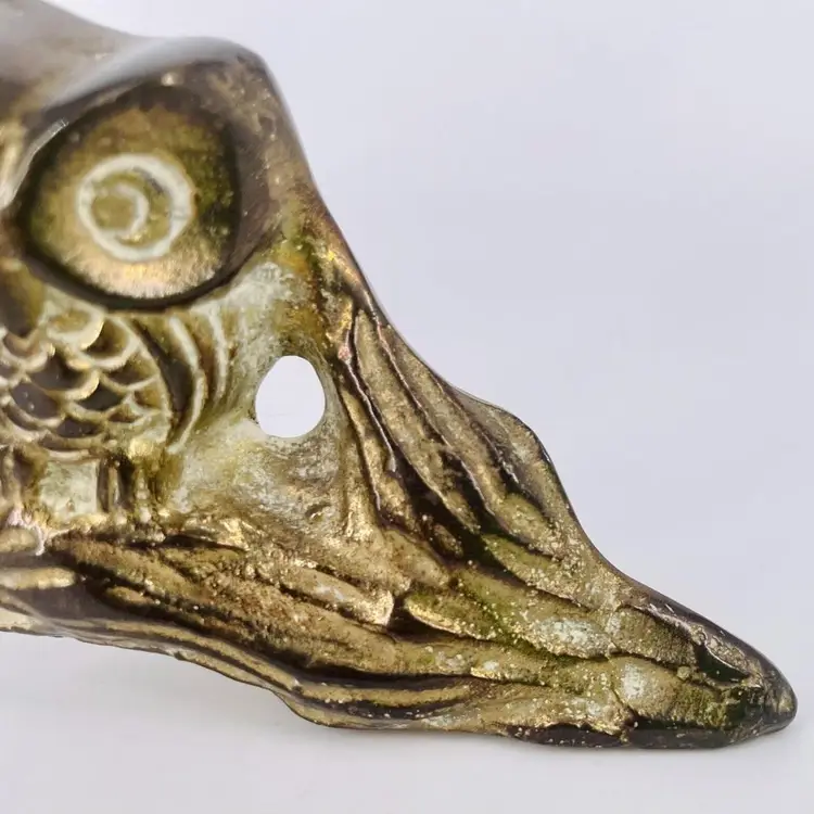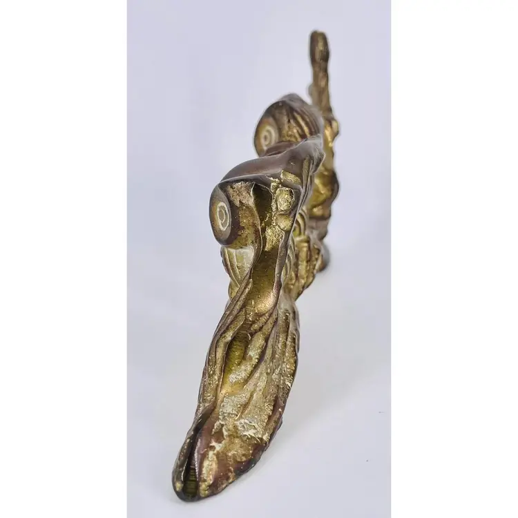 This item is in excellent vintage condition. No missing pieces. Heavy patina in certain areas. See all images for details. Measures 7" long by 3 3/4" tall. Weighs 1lb 9oz