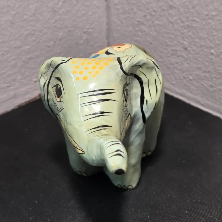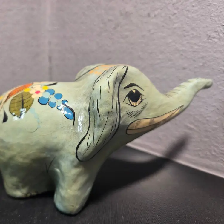 This product is a rare and unique piece of mid-century Mexican folk art in the form of a handmade paper mache elephant created by the renowned artist Sergio Bustamante. The intricate details and cultural significance of this piece make it a valuable addition to any collection of Latin American art. Made in Mexico, this item embodies the craftsmanship and artistic style that is characteristic of Mexican folk art, making it a special and sought-after item for collectors and enthusiasts of traditional Mexican culture. B1