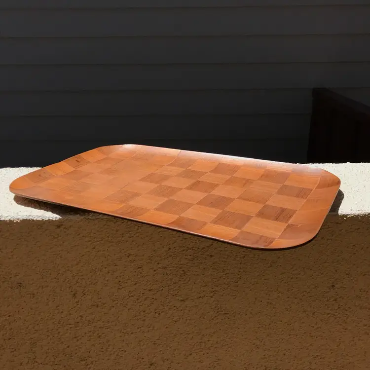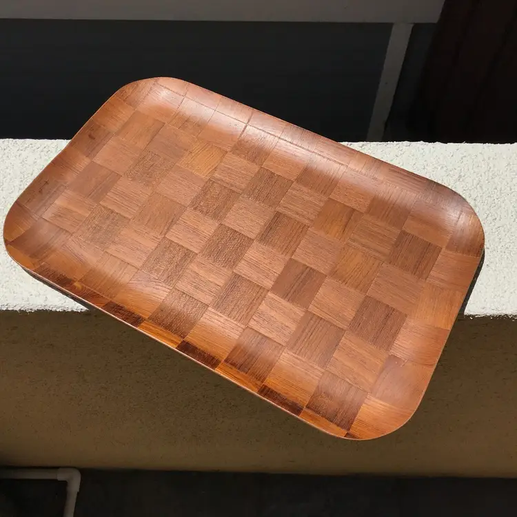 – Brand: Unbranded – Pattern: Woven – Type: Serving Tray – Number of Compartments: 1 – Shape: Rectangle – Original/Licensed Reproduction: Original – Size: Large – Color: Brown – Style: Mid-Century Modernism – Material: Wood – Time Period Manufactured: 1960-1969 – Vintage: Yes