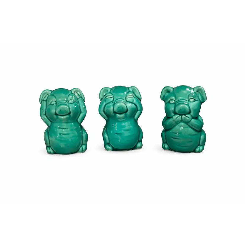 Three tiny guardians from mid-century Japan, each standing about 3.5 inches tall and finished in a beautiful teal glaze. Gentle age crazing adds character and vintage authenticity. Known as the Three Wise Keepers, they quietly hold laughter, calm, and good intentions wherever they rest. Perfect for a kitchen shelf, curio, or any cozy corner that could use a little vintage magic.