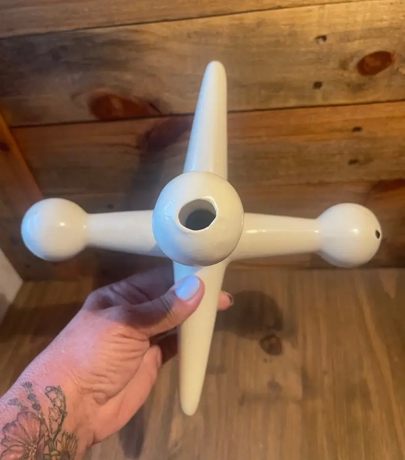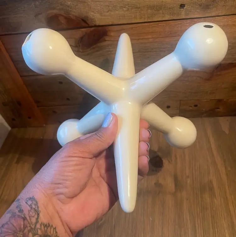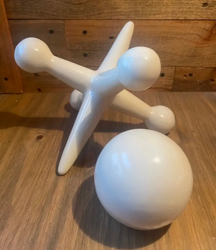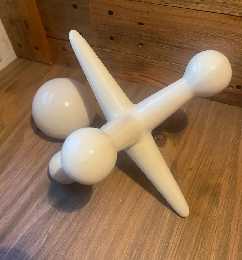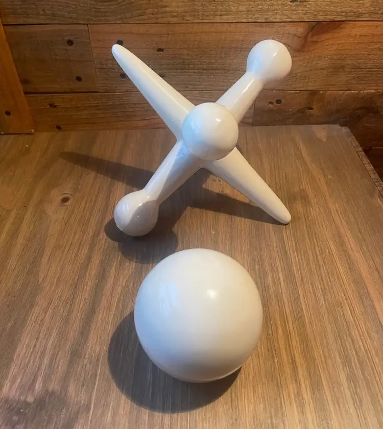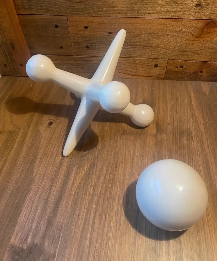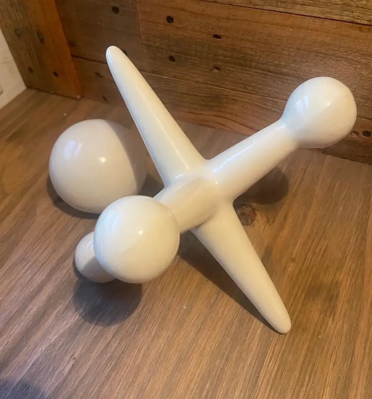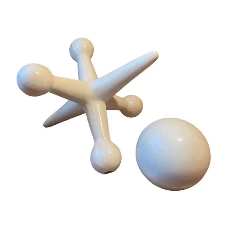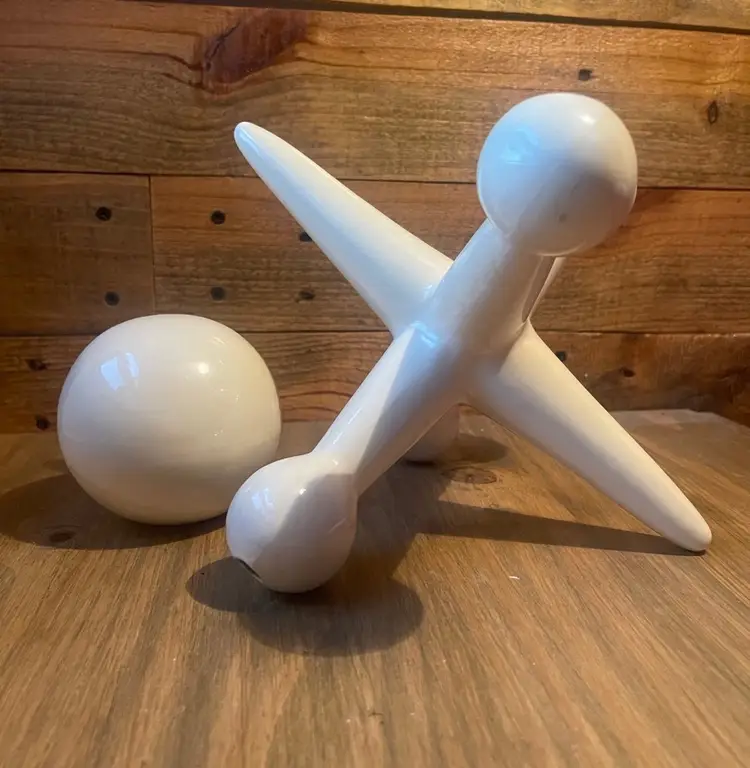 Mid Century White Ceramic Ball and Jack Shelf Sculptures