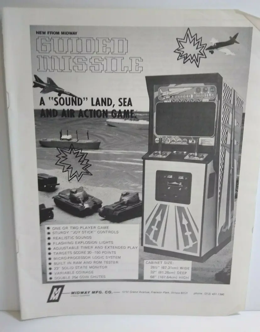 Magazine: AD Modified Item: Yes Country/Region of Manufacture: United States Original/Reproduction: Original Year: 1977 Game Title: Guided Missile Modification Description: Edge wear. See notes. Brand: Midway
