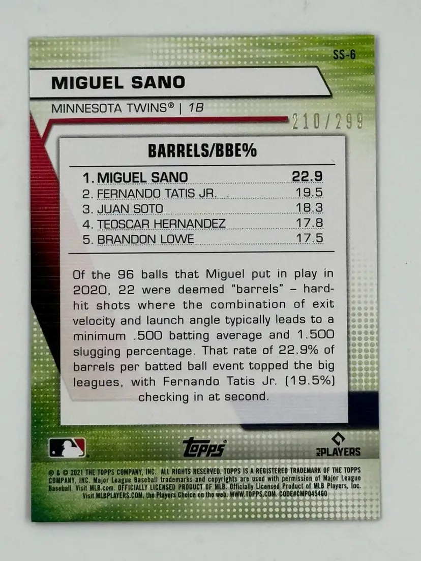 Miguel Sano 2021 Topps Significant Statistics Blue /299 Minnesota Twins