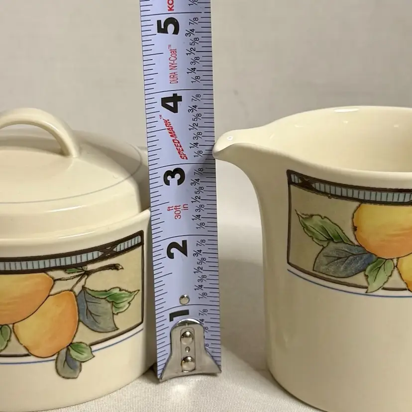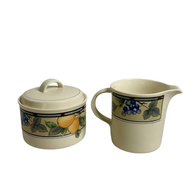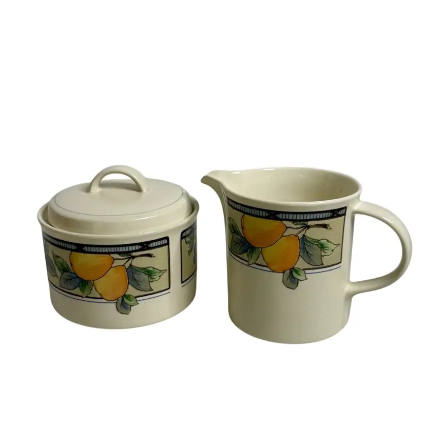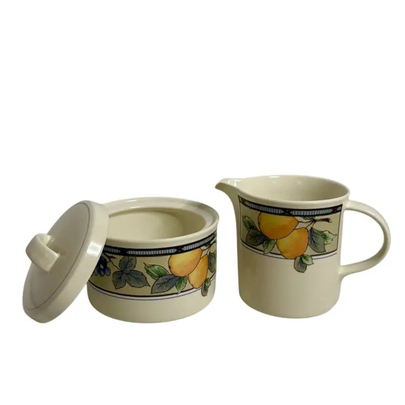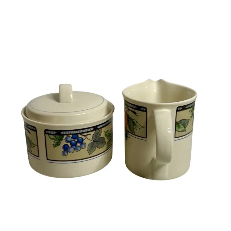 Mikasa Intaglio Garden Harvest CAC29 Creamer and Lidded Sugar fruit design.