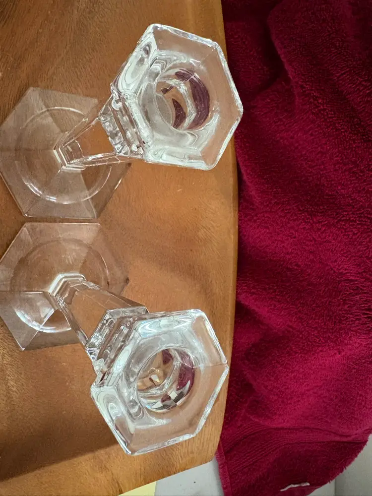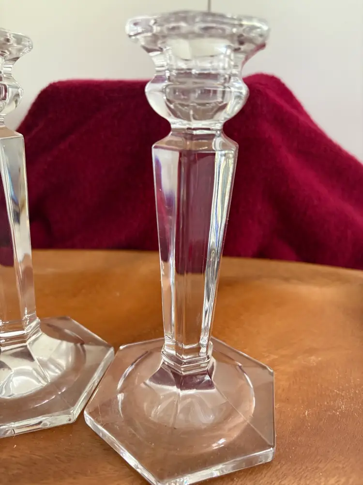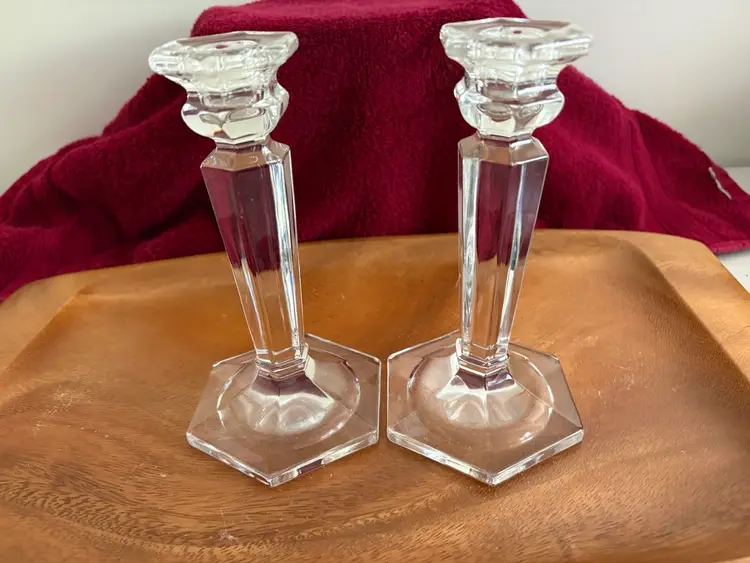 Set of 2 - Mikasa crystal Candle Stick Holder - Cambridge design. Thick Crystal Glass. Measures approx 6 1/2"H x 3 1/4" wide at base (3 3/4" point to point)