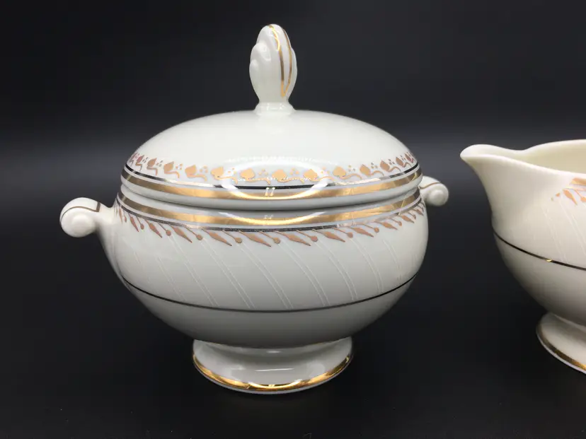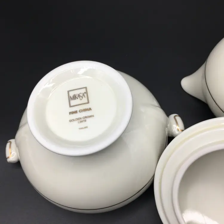 Mikasa Golden Crown L3416 Covered Sugar and Creamer Set NEW With Tags
