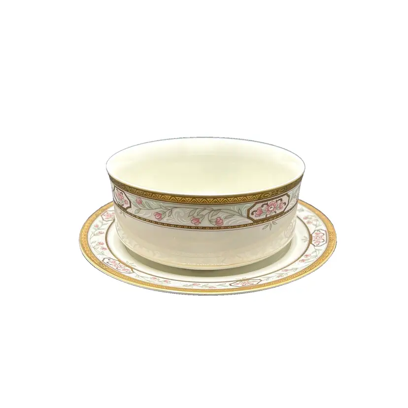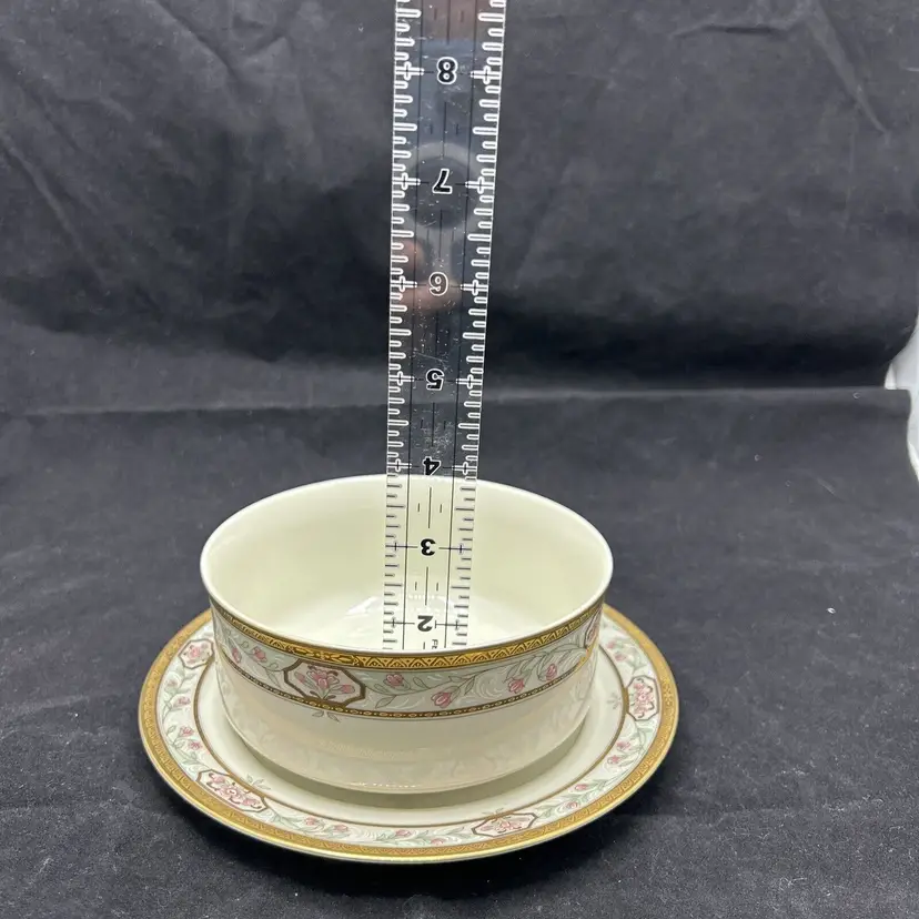 Brand: Mikasa Number of Items in Set: 2 Pattern: Merrick Type: Gravy Boat Set Shape: Round Original/Licensed Reproduction: Original Color: Multicolor Material: Porcelain Country/Region of Manufacture: Japan Finish: Glossy Vintage: Yes