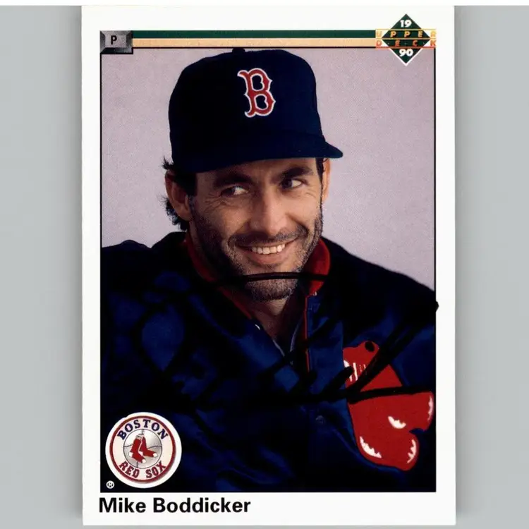 Authentic 1990 Upper Deck baseball card featuring Mike Boddicker of the Boston Red Sox, adorned with his signature. A treasured item for Red Sox fans and autograph card collectors. Your purchase aids Signatures For Soldiers in their mission to support homeless and disabled veterans.