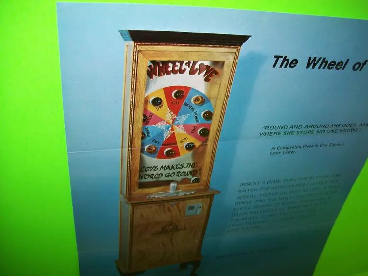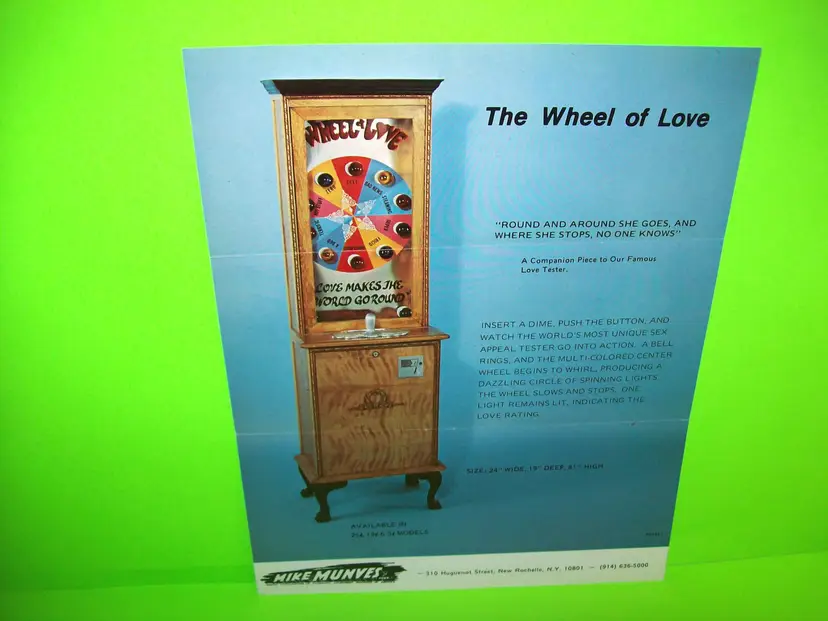 Original: Promotional Advertising Arcade: Flyer Modified Item: No Country/Region of Manufacture: United States Original/Reproduction: Original Year: Unknown Game Title: The Wheel of Love Brand: Mike Munves