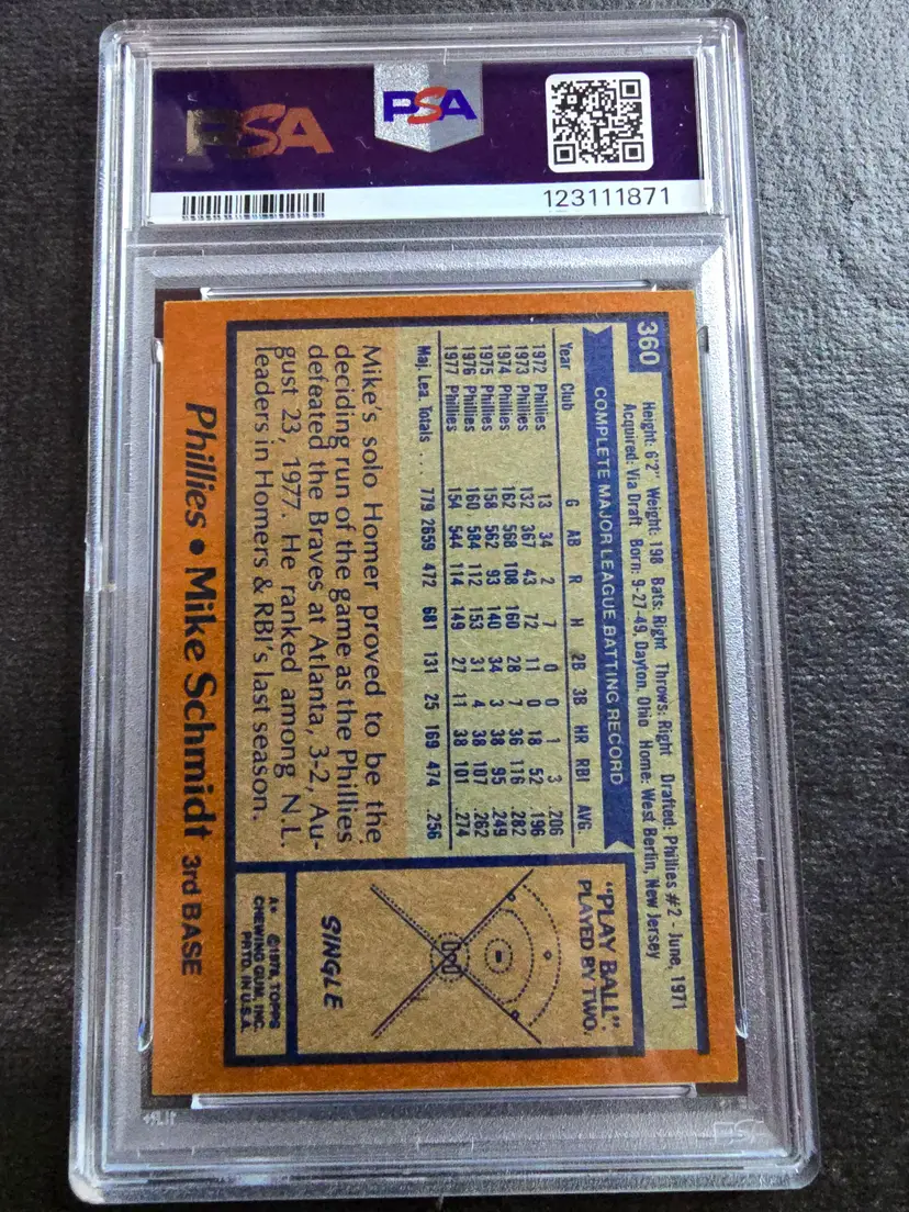 Mike Schmidt Vintage Graded Lot of 14 Baseball Cards This lot contains 1978 Topps PSA 5 Cert. #123111871 1983 Topps SGC 7.5 Cert.# 9230968 (12) Raw Cards of the Phillies Legend