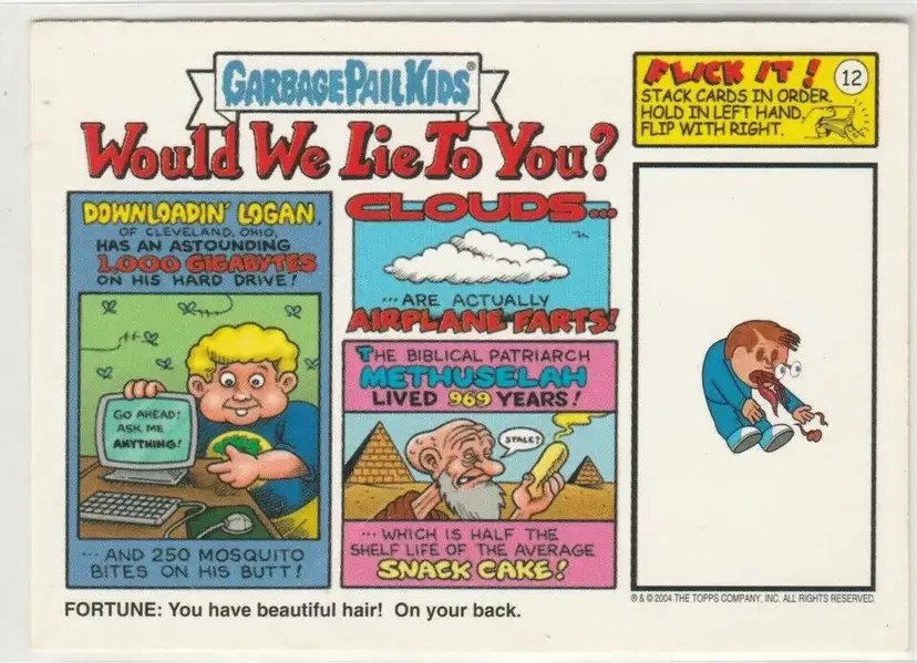 Movie: The Garbage Pail Kids Movie Card Size: Standard Autographed: No Set: Garbage Pail Kids - All-New Series 3 Year Manufactured: 2004 Material: Card Stock, Paper Age Level: 6+ Franchise: Garbage Pail Kids Original/Licensed Reprint: Original Vintage: Yes Series: 2004 All-New Series 3 ANS3 Type: Non-Sport Trading Card Descriptive: comedy parody satire spoof Language: English Manufacturer: Topps Features: Base Set, Sticker Genre: Comedy, Parody, Satire Card Type: die-cut trading card sticker Country/Region of Manufacture: United States Related ID: overourheadz Store ID: American Pop Cult Mononym: overourheads