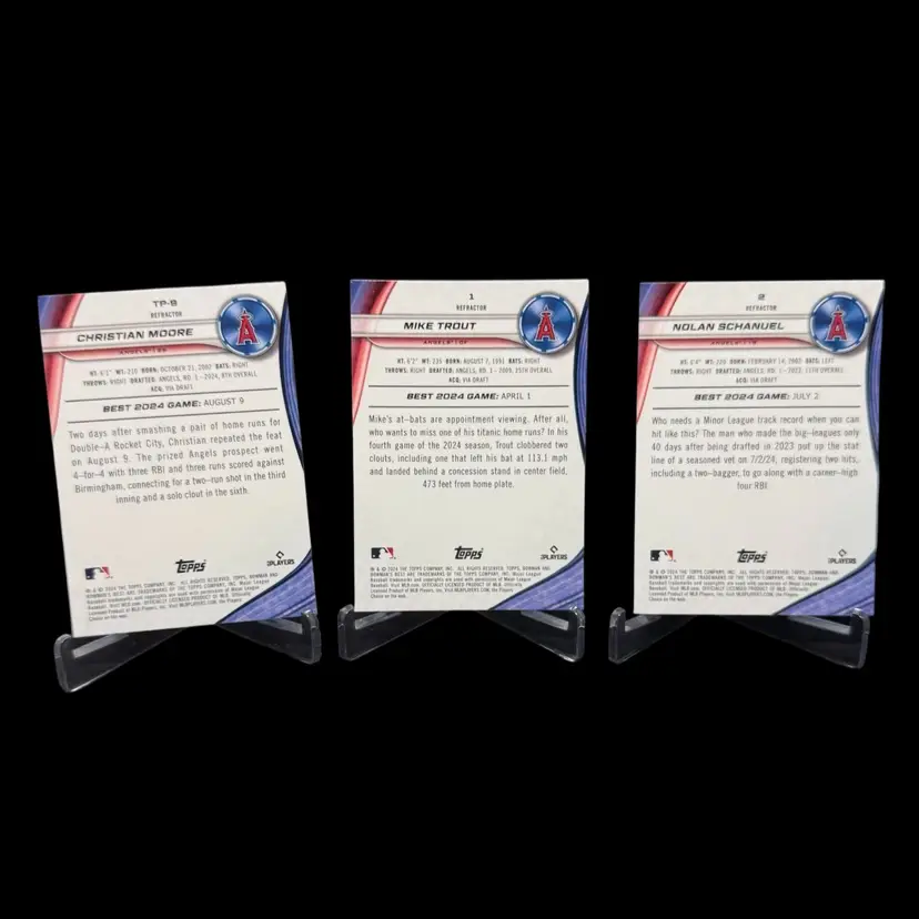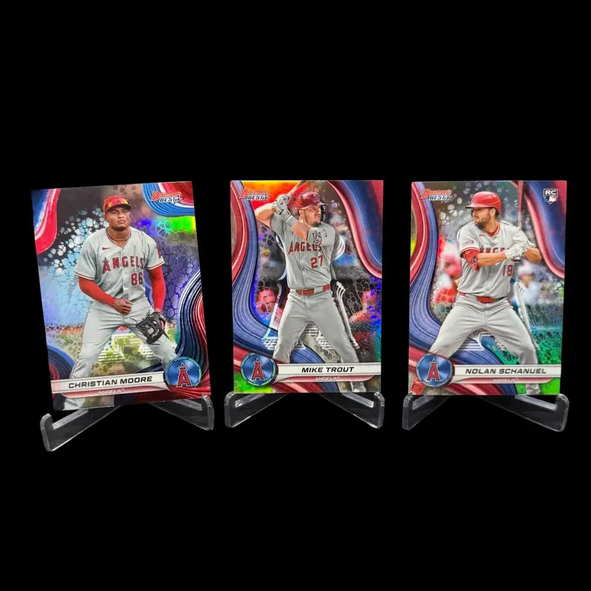Mike Trout Nolan Schanuel Christian Moore 2024 Bowman's Best Refractor Lot Los Angeles Angels