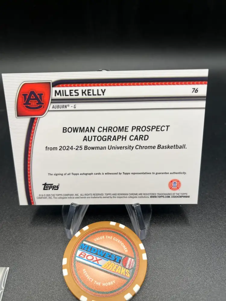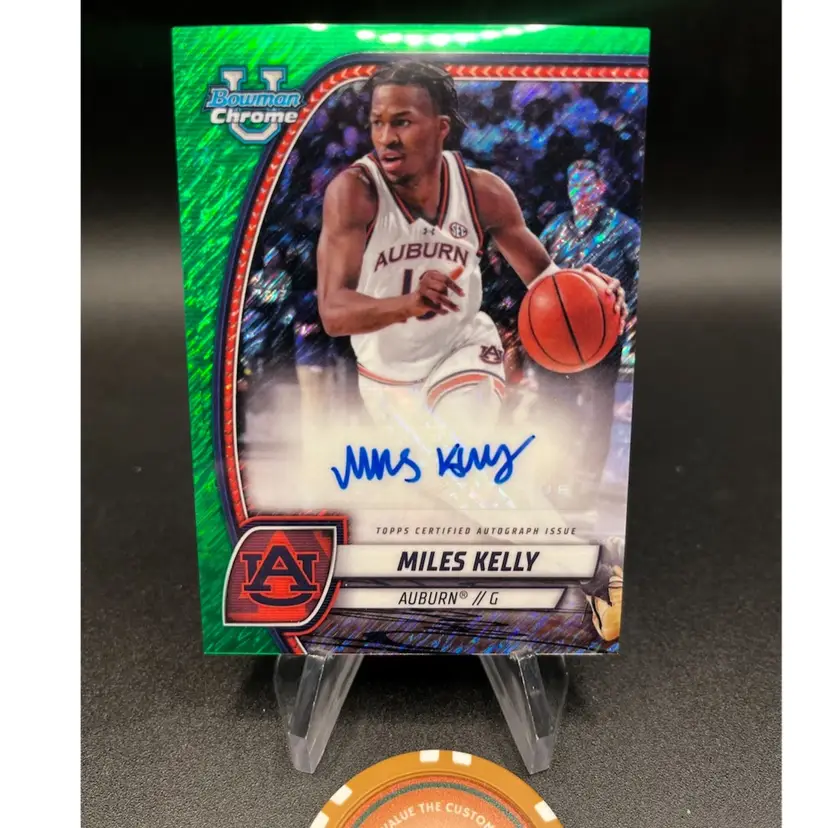24-25 Bowman Chrome U Miles Kelly green shimmer auto. Auburn Tigers.