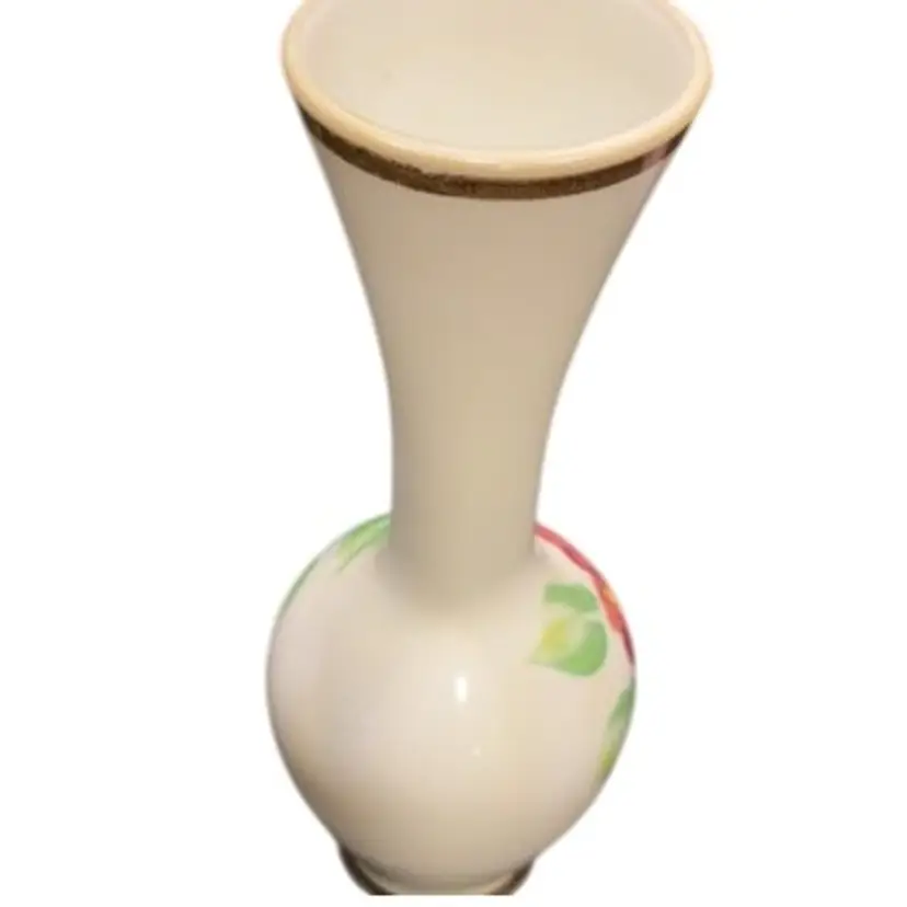 Measures 7”x2.5”. Milk glass vase. No chips or cracks.