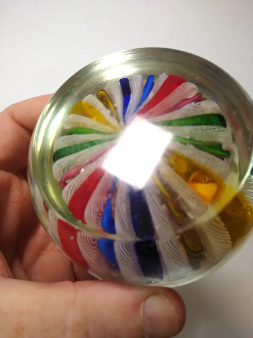 This Stunning Glass Paperweight measures approx 2.75 inches across at its widest point and just 3 inches high.