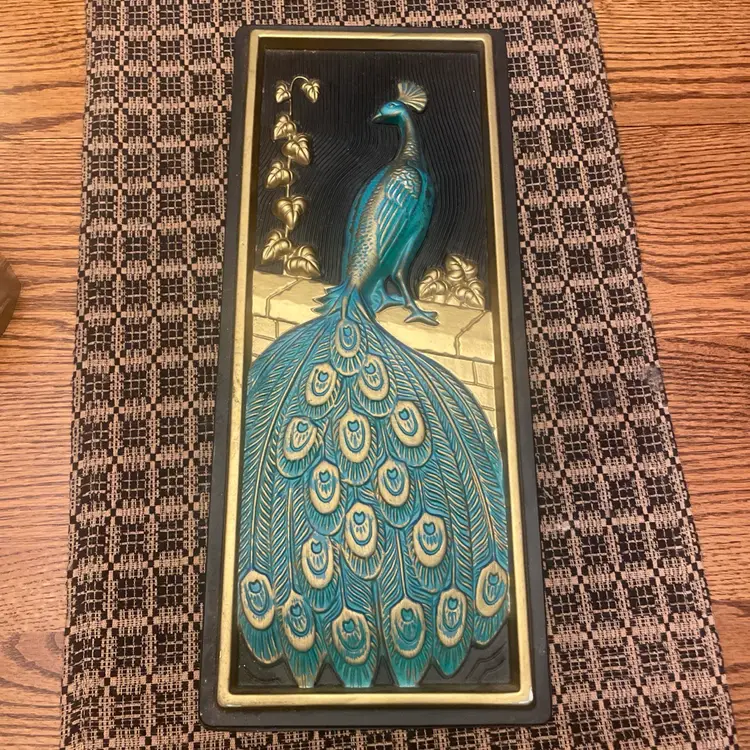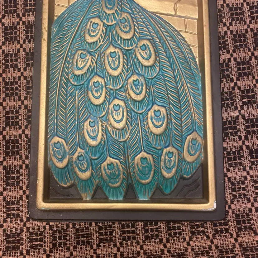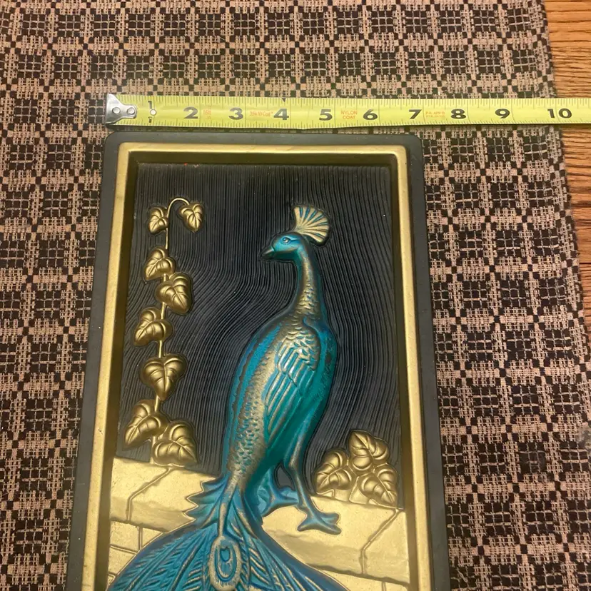Miller Studios 3D Peacock Decor Teal Black Gold MCM Mid Century Modern 1 panel