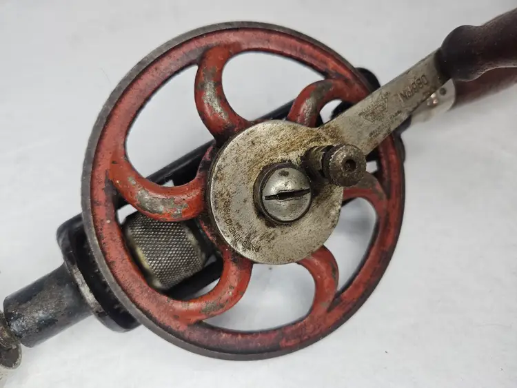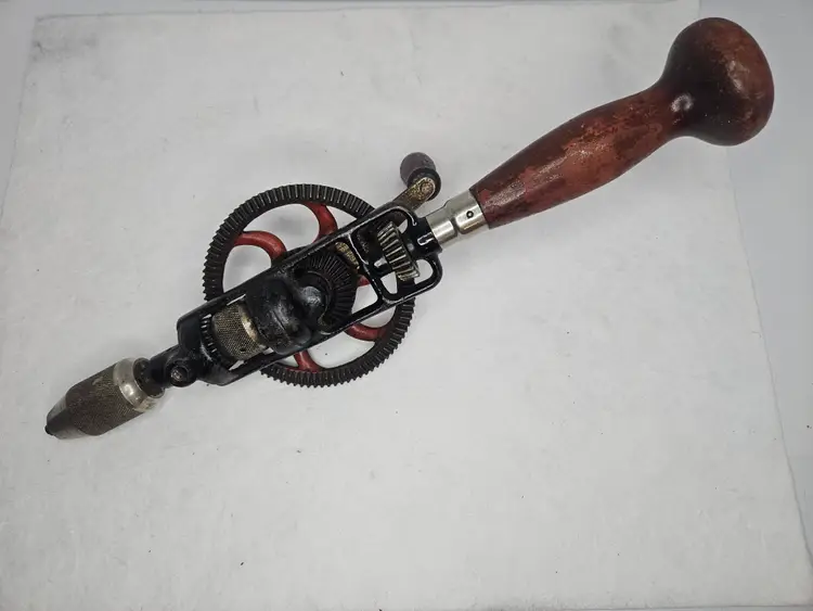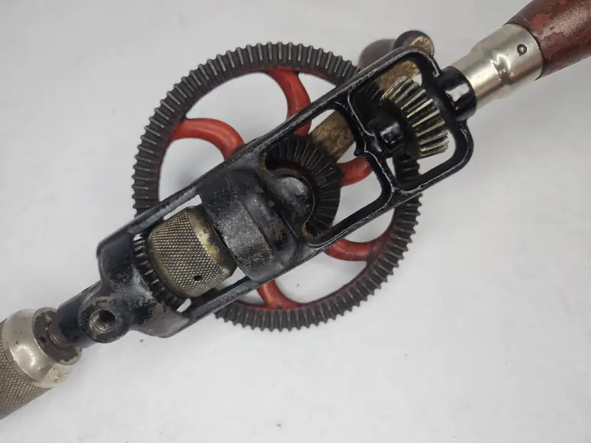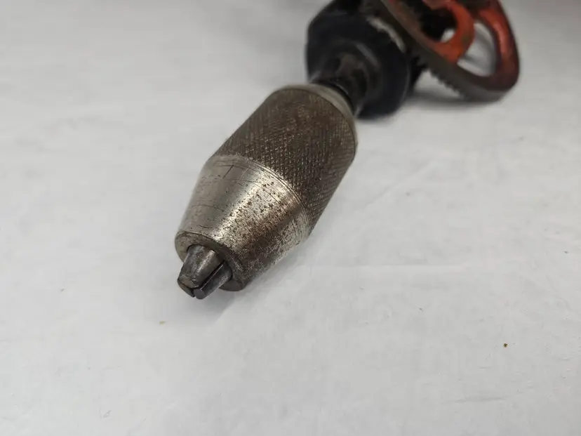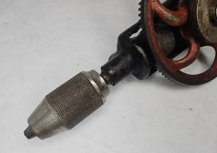 Awesome Millers Falls hand drill. Good chuck. What's awesome about this drill is it ratchets and has two speeds. Missing side handle and priced accordingly. Needs a good clean and lubrication.