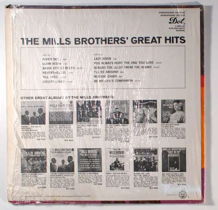 The Great Hits, by Mills Brothers, released in 1958 on Dot Records, is a compilation album featuring newly recorded versions of their earlier Decca hits, showcasing their signature vocal jazz and traditional pop style. The album includes iconic tracks like Paper Doll, a 1943 Billboard No. 1 hit that sold six million copies, and The Glow-Worm, which reached No. 2 on the pop charts in 1952 and No. 10 in the UK in 1953. Other notable singles include You Always Hurt the One You Love (No. 1 Pop, No. 5 R&B in 1944) and Till Then (No. 8 Pop, No. 1 R&B in 1944), reflecting their widespread appeal. Historically significant as the first African-American group to have a national radio show on CBS in 1930 and a No. 1 Billboard hit with Paper Doll, the Mills Brothers broke racial barriers in the music industry. This album captures their enduring legacy, with tracks like Lazy River and Nevertheless highlighting their innovative vocal harmonies that mimicked instruments, a technique that set them apart.