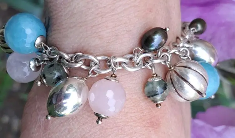 This is a gorgeous Milor Italy charm bracelet. Measures 7 inches long when laying flat. Marked 925 and verified sterling silver. Please check photos and feel free to ask questions. Thanks for looking