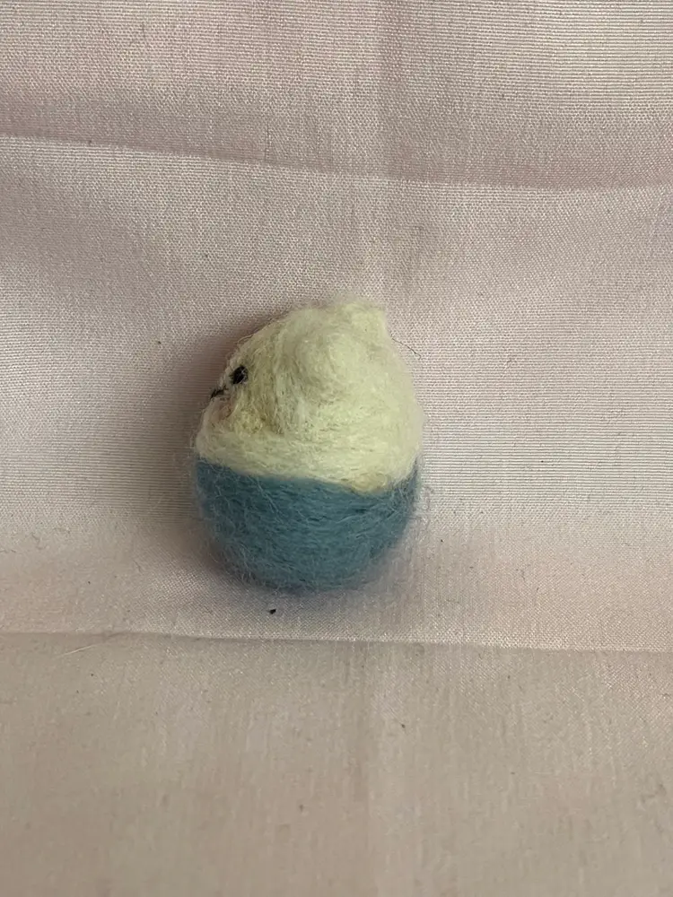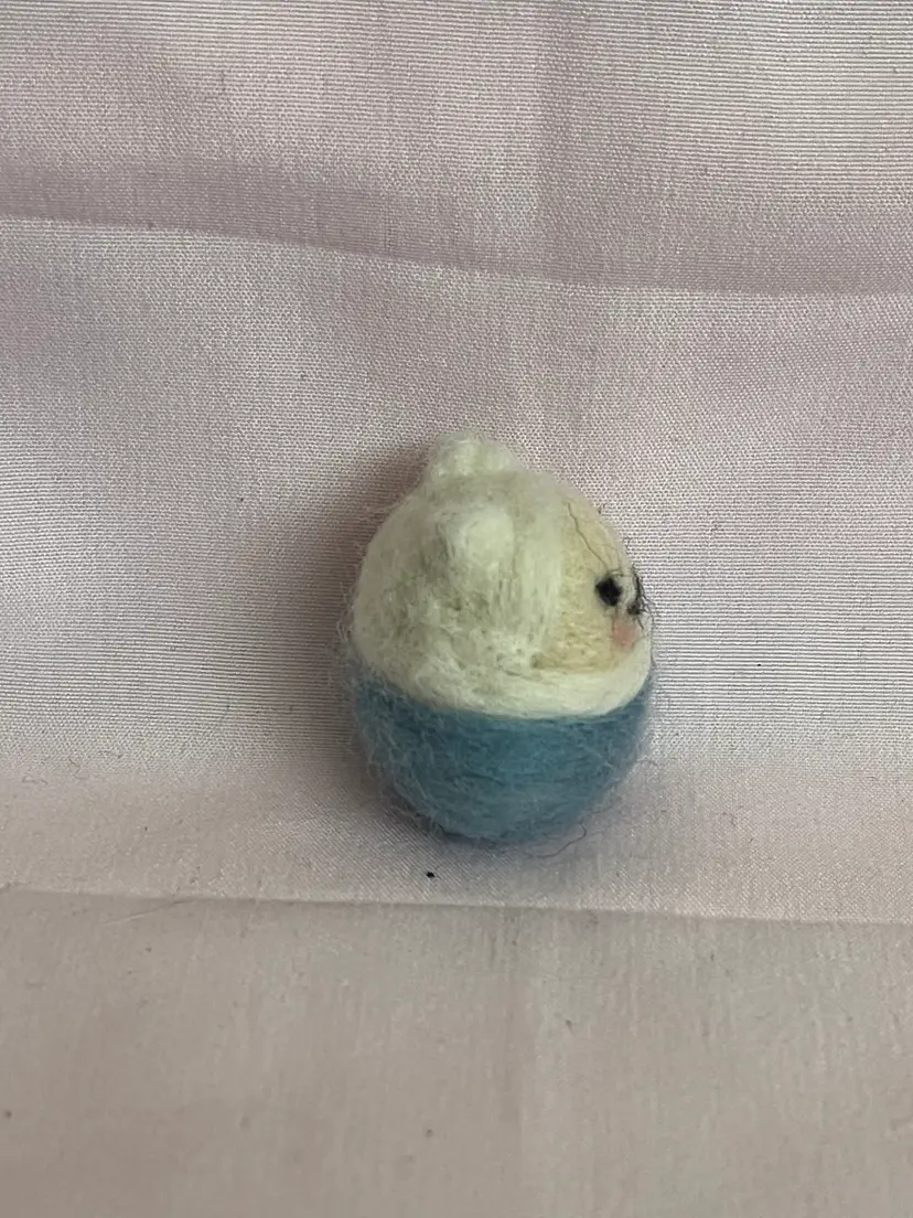 Handmade by me. Do not buy if you are allergic to wool; product is 100% wool Approximately 1in X 1in