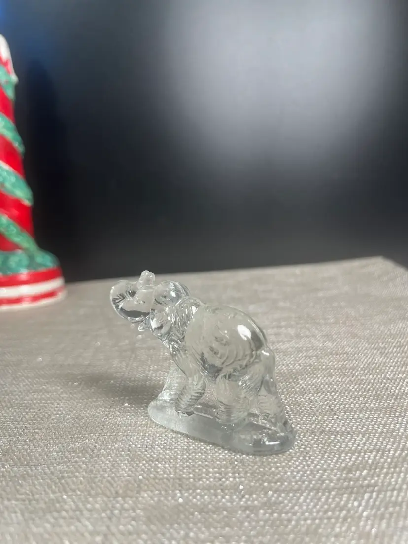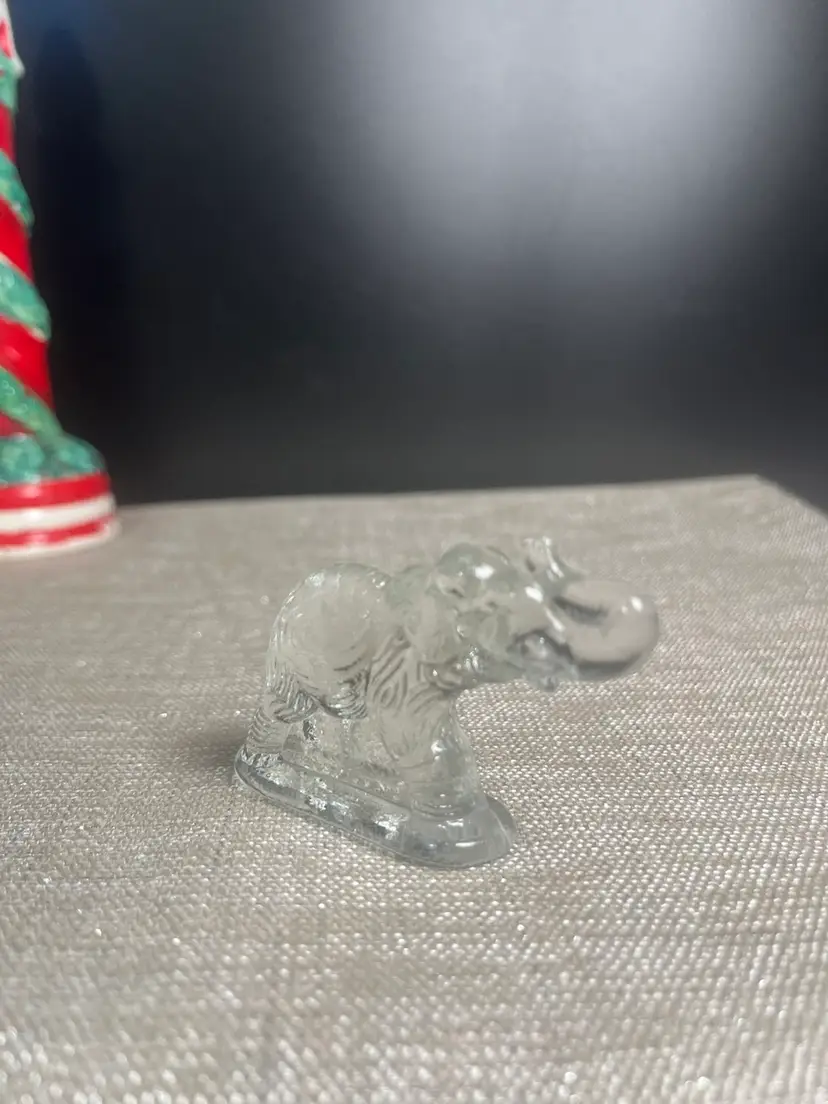 A cute lil'mini elephant. Has no chips, cracks, bruises. is in great condition. Measures approx 1.75"H, 2.5"L, 0.75"Deep, 1.7 Oz