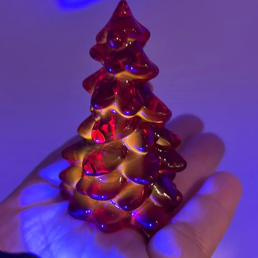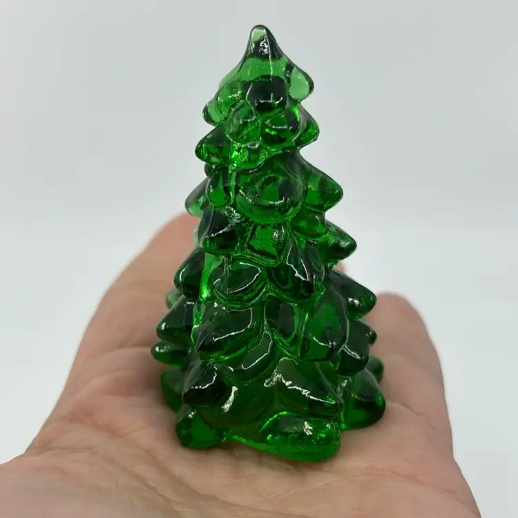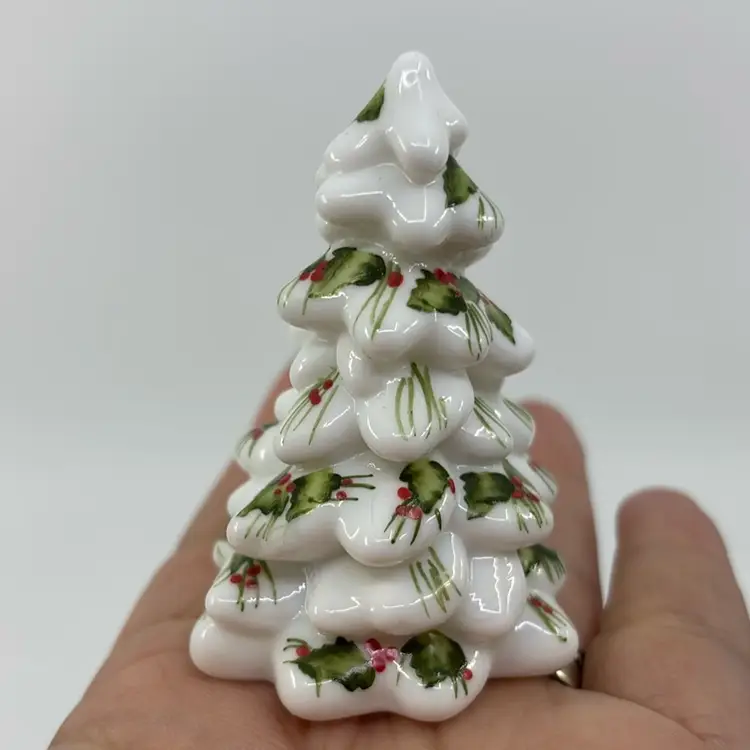 Mini Glass πŸŽ„ Tree-o: Ruby Red Amberina, Holly Milk Glass, Emerald Green 2.75” ~ Mosser Glass