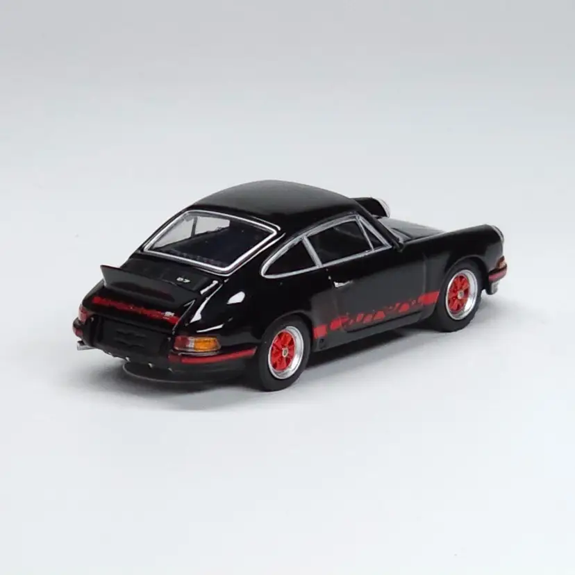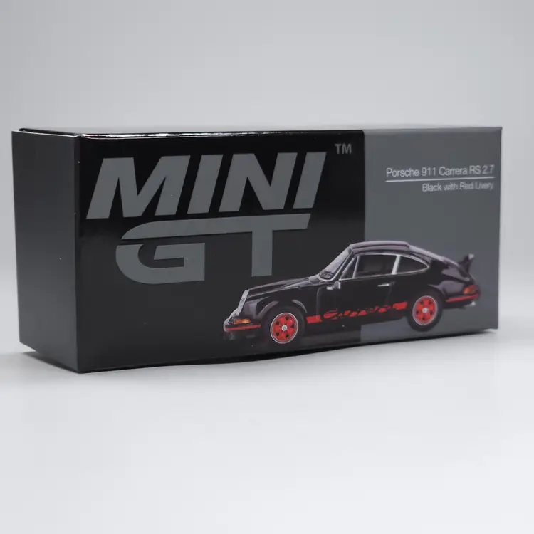 Mini GT Porsche 911 Carrera RS 2.7 Black w Red Livery #688. Package is rated in EXCELLENT condition. 1:64 Scale