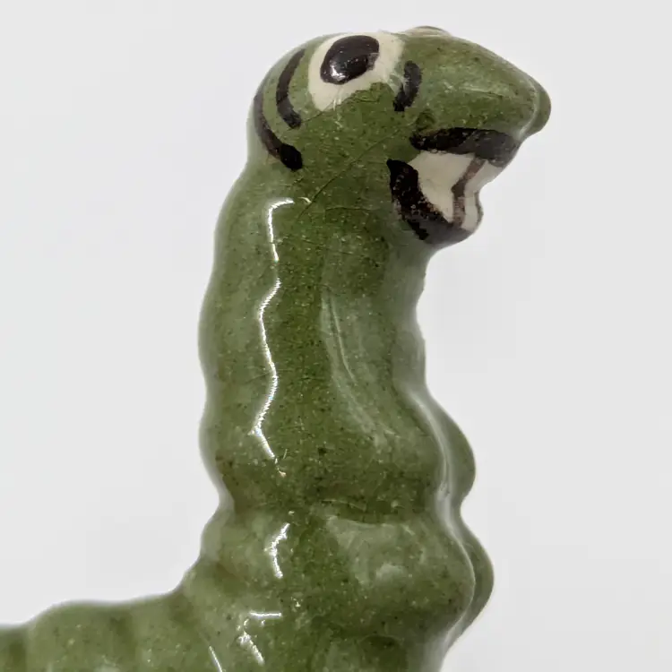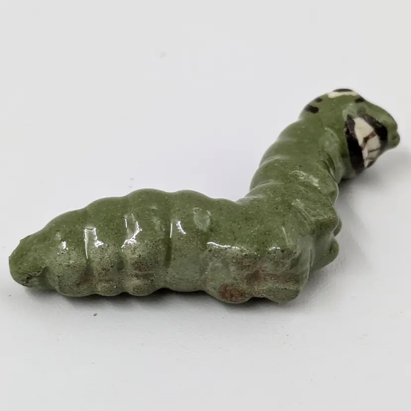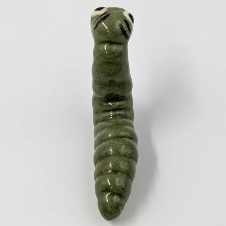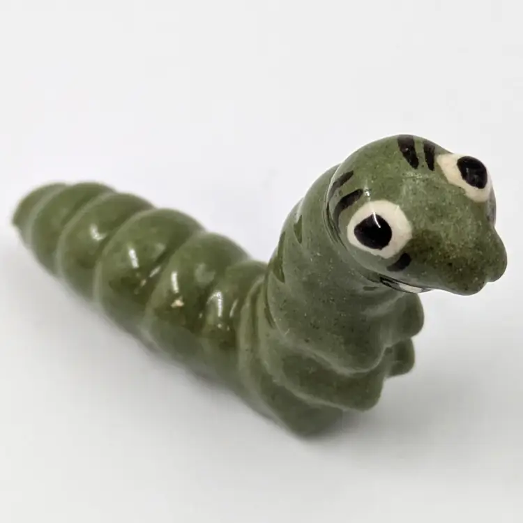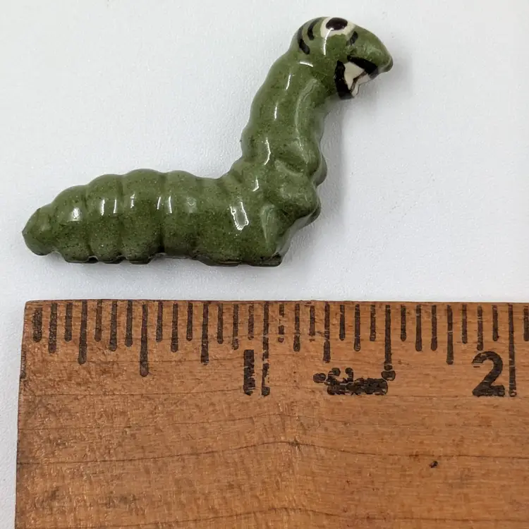 Mini ceramic caterpillar figure by Hagen Renaker that looks like she is having an amazing day. Good vintage condition, there is a bit of crazing.