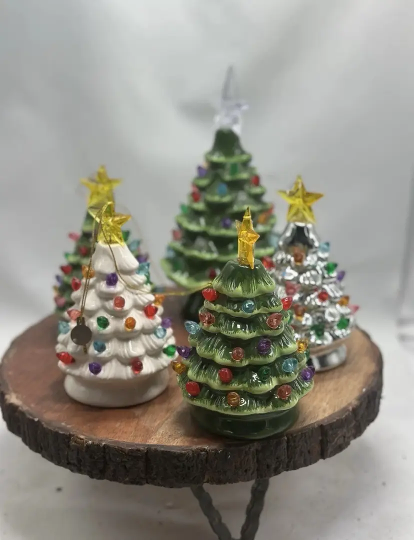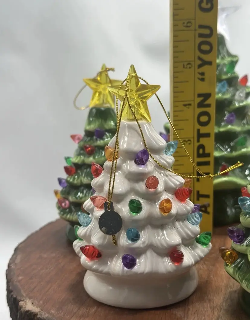 Mini Nostalgic Ceramic Christmas Trees Green, White, Silver Lot Of 5