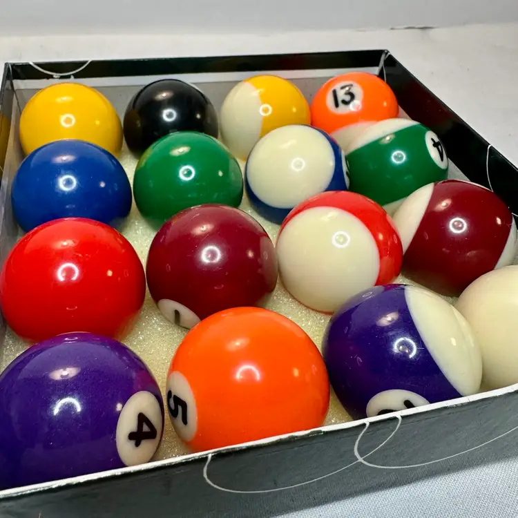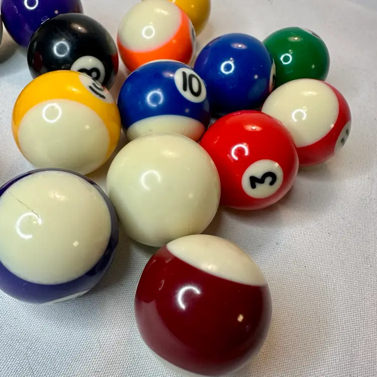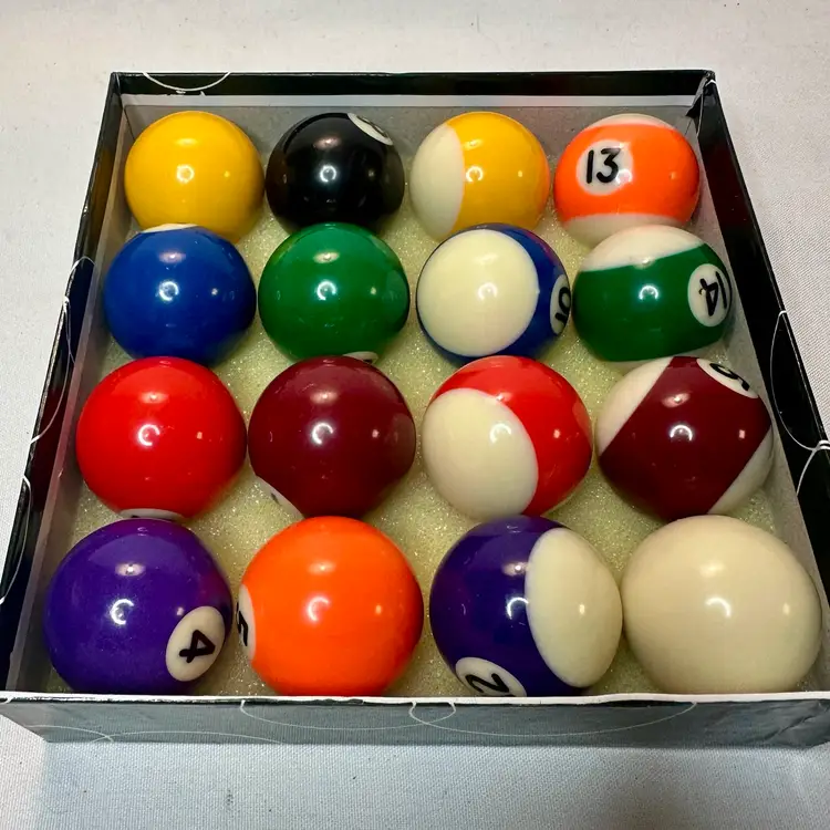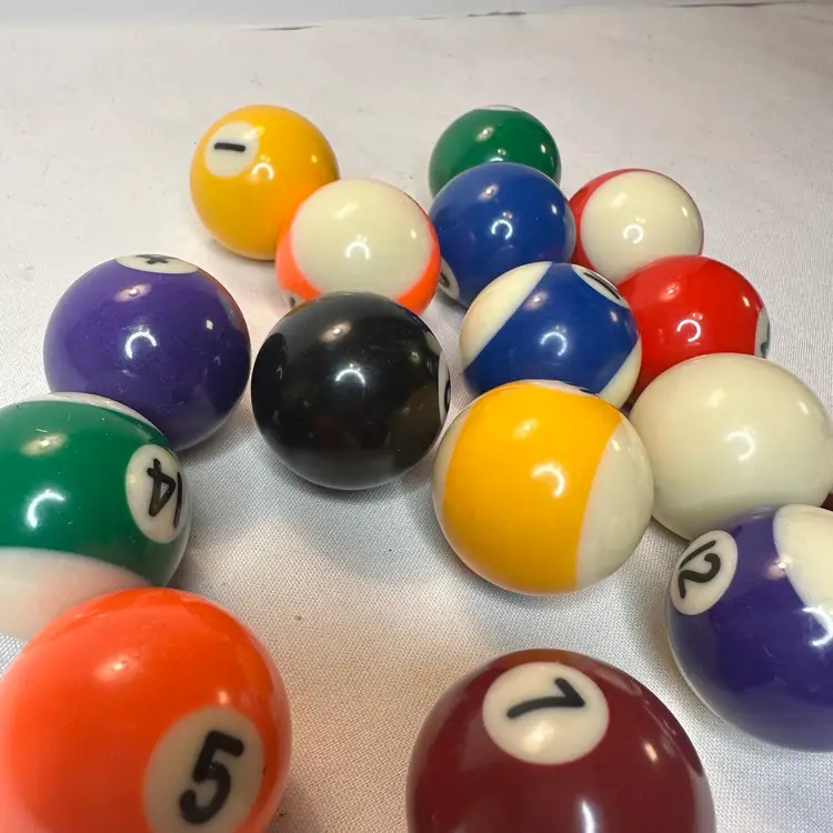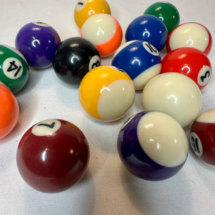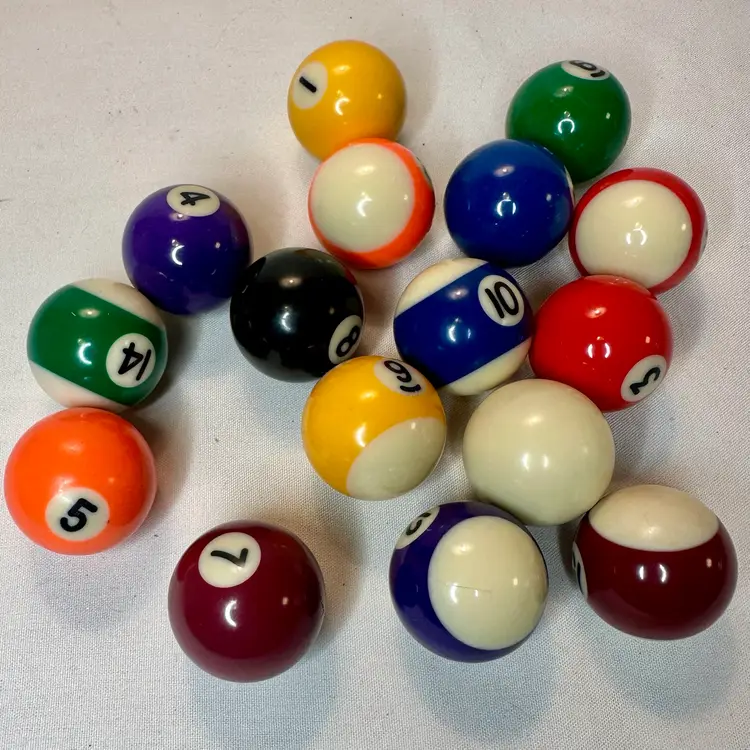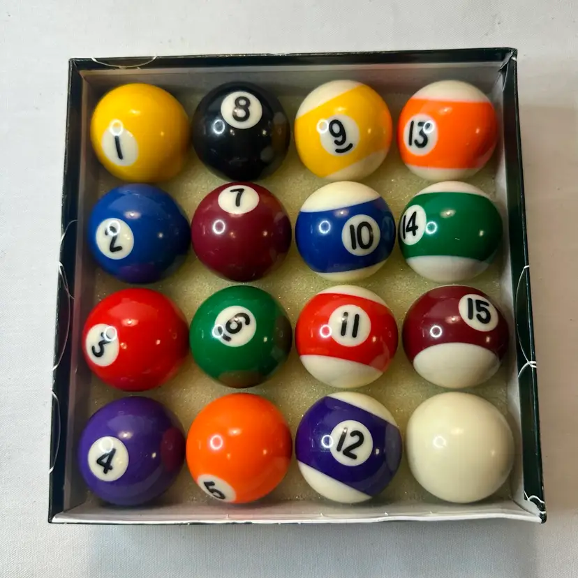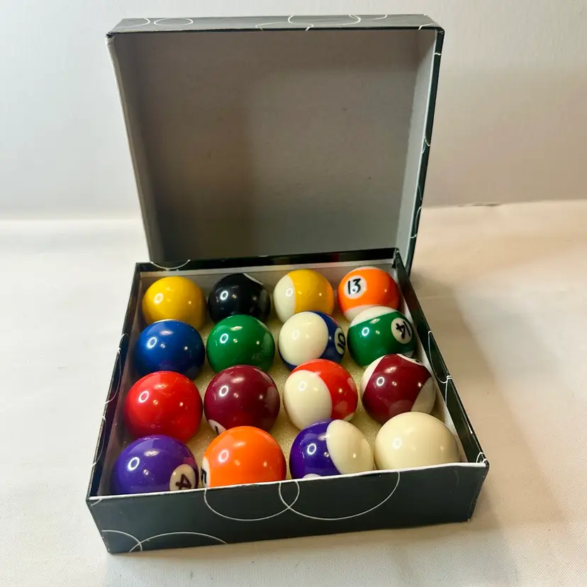 This listing is for this complete set of Mini Pool Balls. It includes all numbers 1-16 and the white ball. They are 1.5” in size, perfect for the table top games. They are also perfect decor for a man cave or bar.