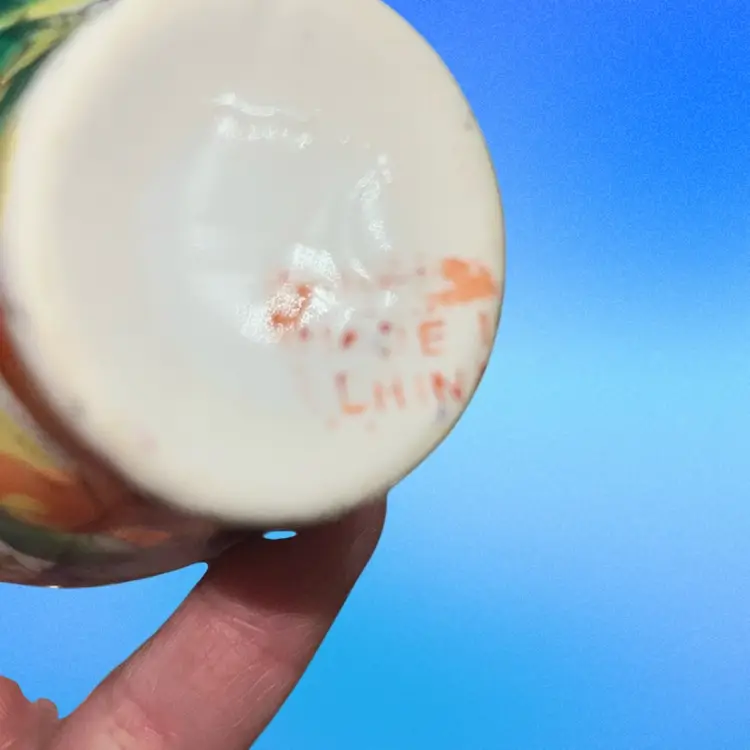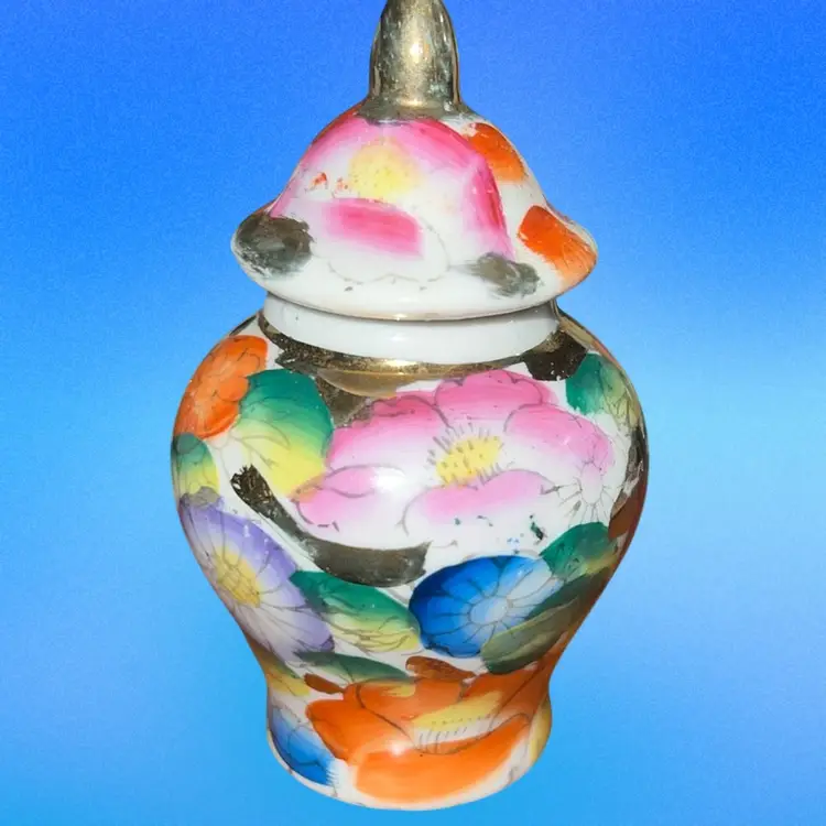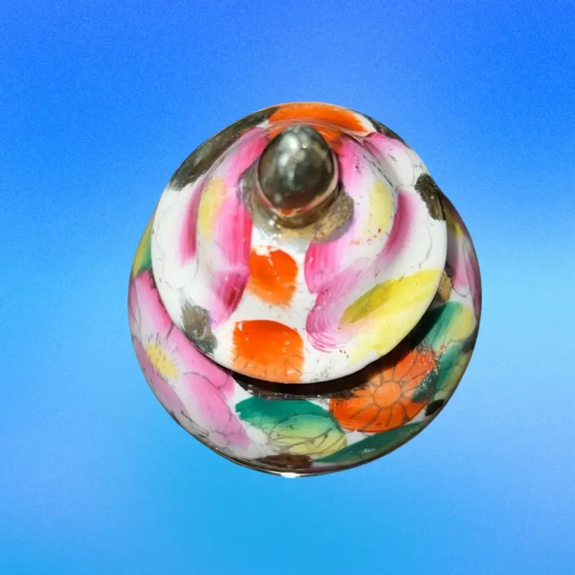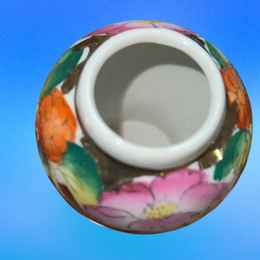 Mini Porcelain Urn With Florals And Gold Trim. 2.5” Tall