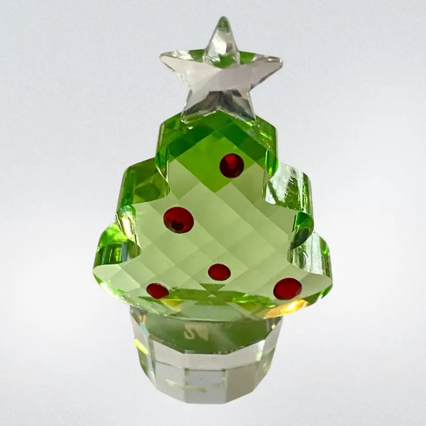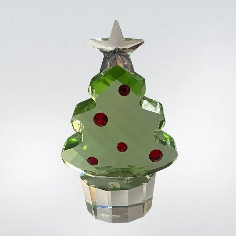 Swarovski Felix the Christmas tree small size shines in Peridot crystal with Light Siam crystal accents. The pot and star tree topper are in clear crystal. Swan insignia etched on bottom. Approximately 1.5” tall and 1” across at its widest point. It is in excellent condition with no damage. There is no box. Designer: Eva Maria Ried Introduced: 2004 Retired: 2011
