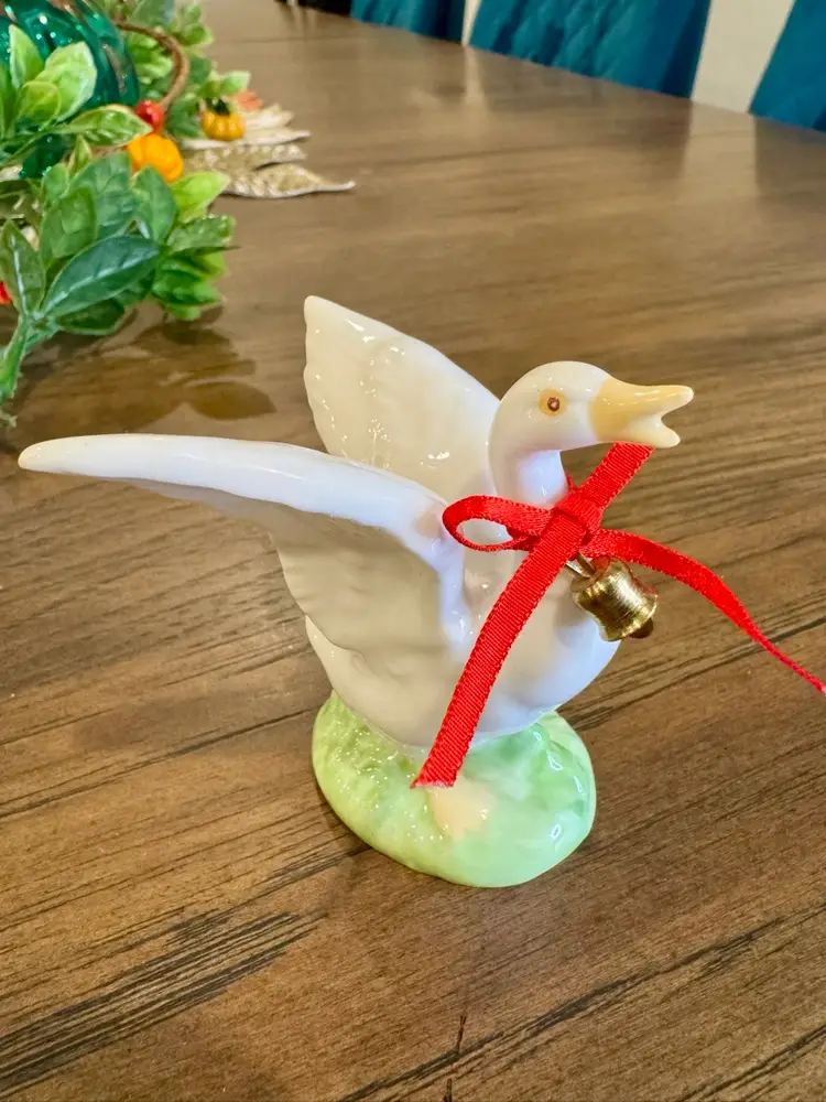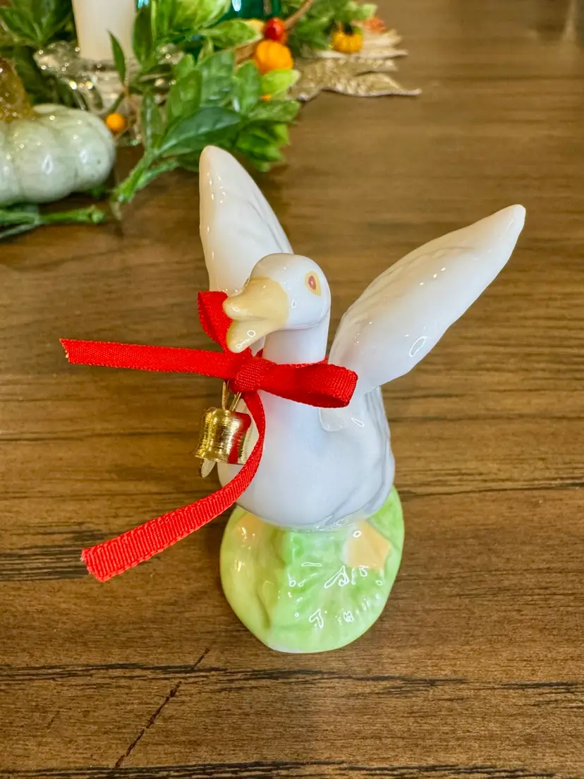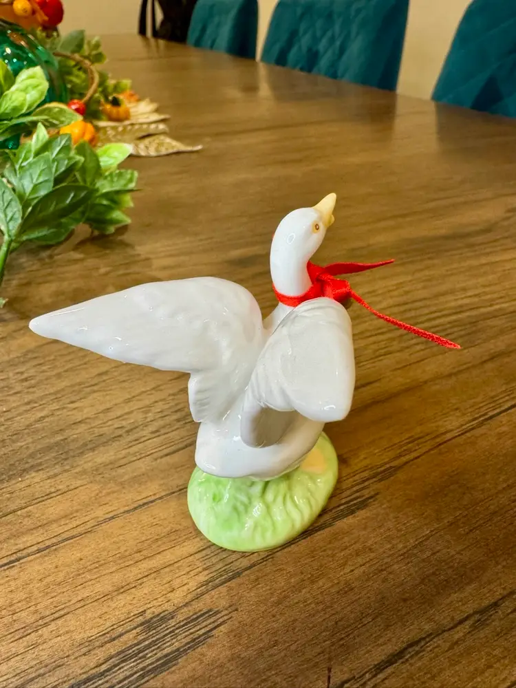 Vintage Bone China White Goose / Duck - Farmhouse, Cottagecore, Country Decor. No chips or cracks. The red ribbon is removable and not glued on or anything. Great for general farmhouse decor, or for seasonal.