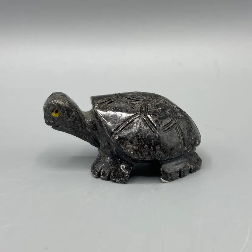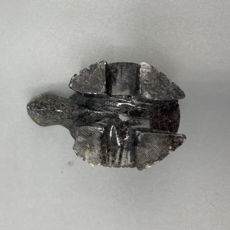 This turtle is in good condition. There is a little wear around the edges of the feet. Please see pictures for specific details. He measures approximately 1 3/4" x 1 1/4" x 3/4" tall.
