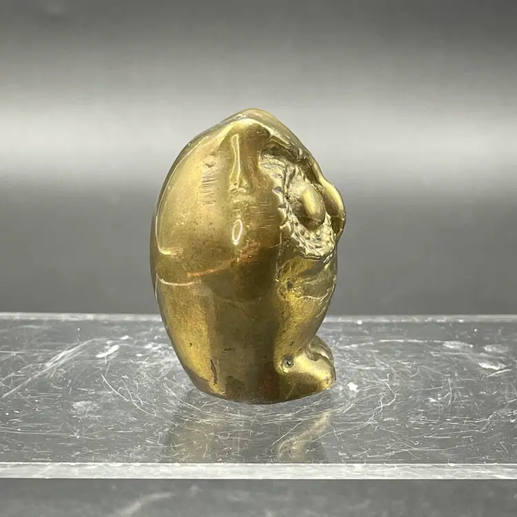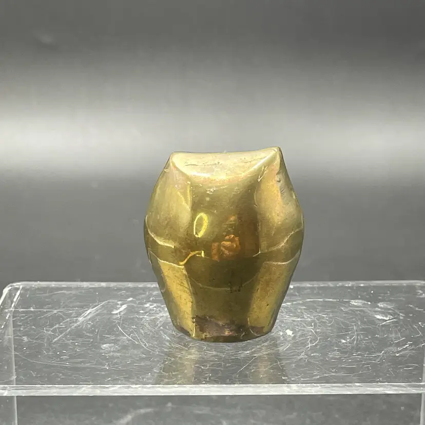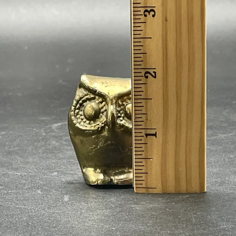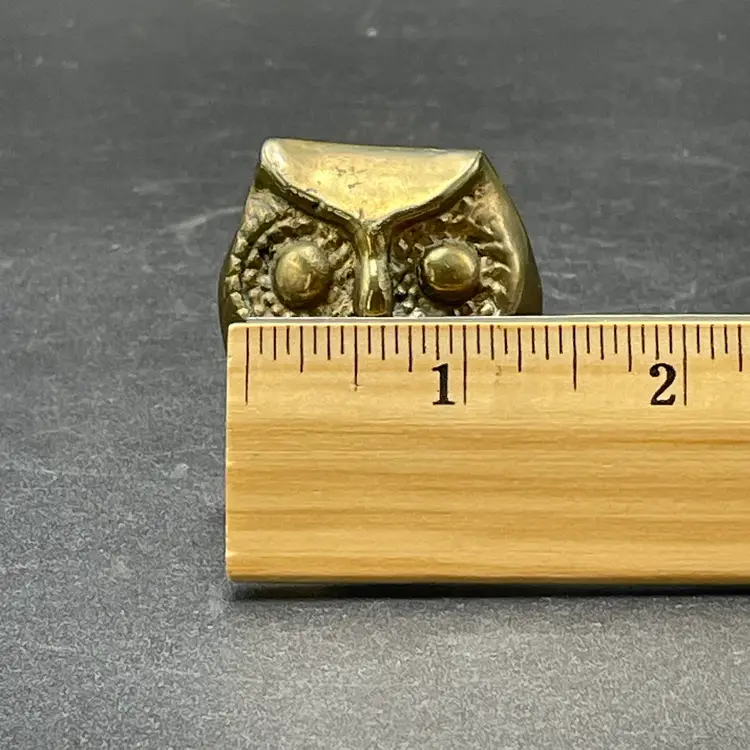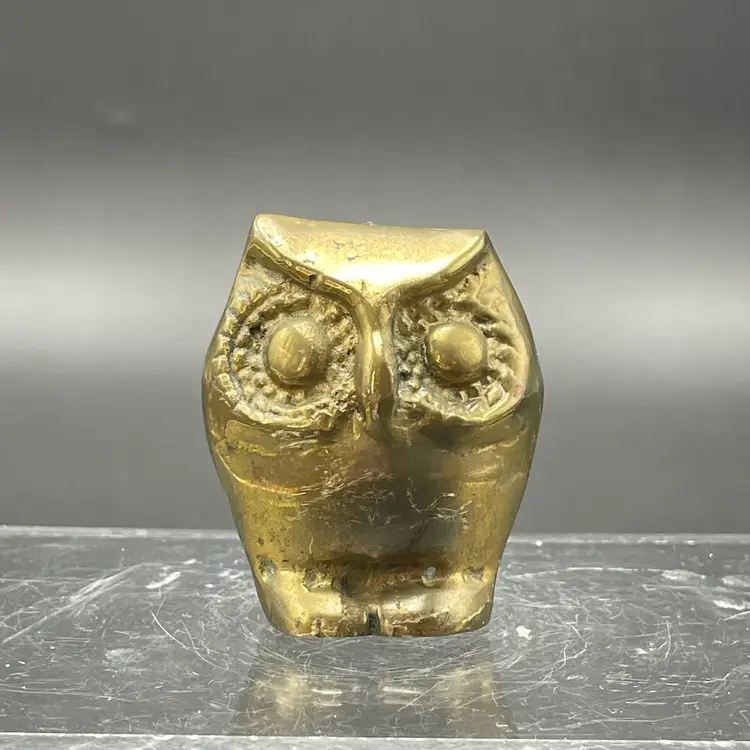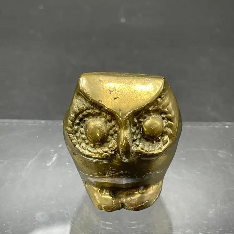 This is a vintage miniature brass owl figurine or paperweight. Measures approximately 2" tall x 1.25" wide. No major flaws.
