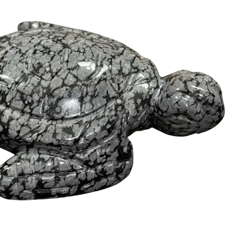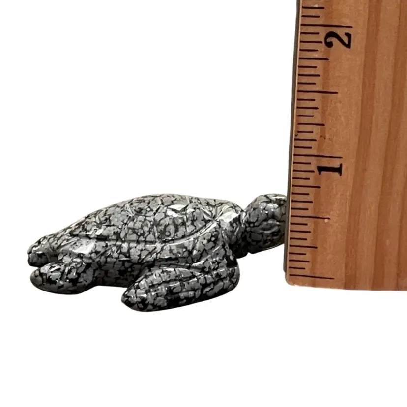 This is as miniature carved stone sea turtle figurine. Measures approximately 2" long x .75" tall. No chips or cracks.